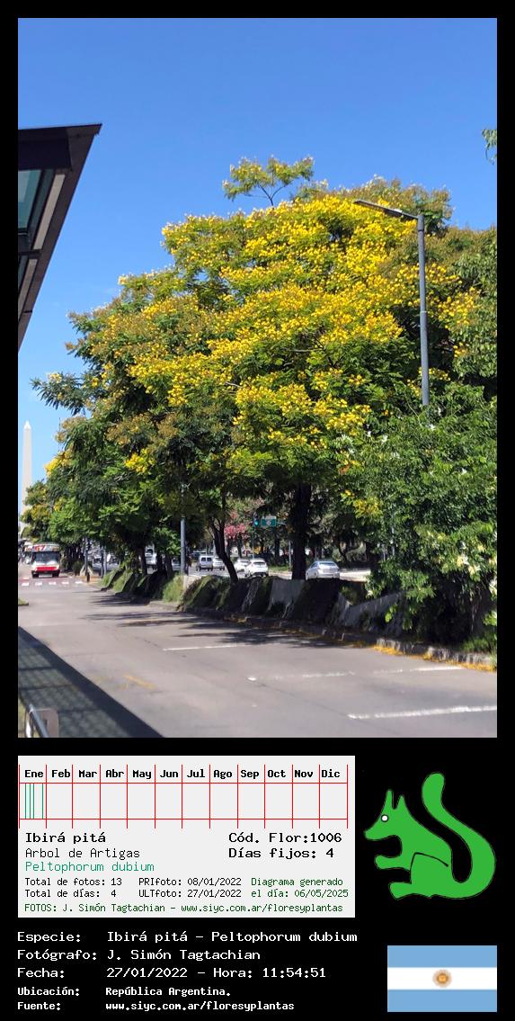 Ibirá pitá - Arbol de Artigas - (Peltophorum dubium) - Especie autóctona para Argentina