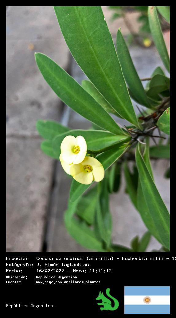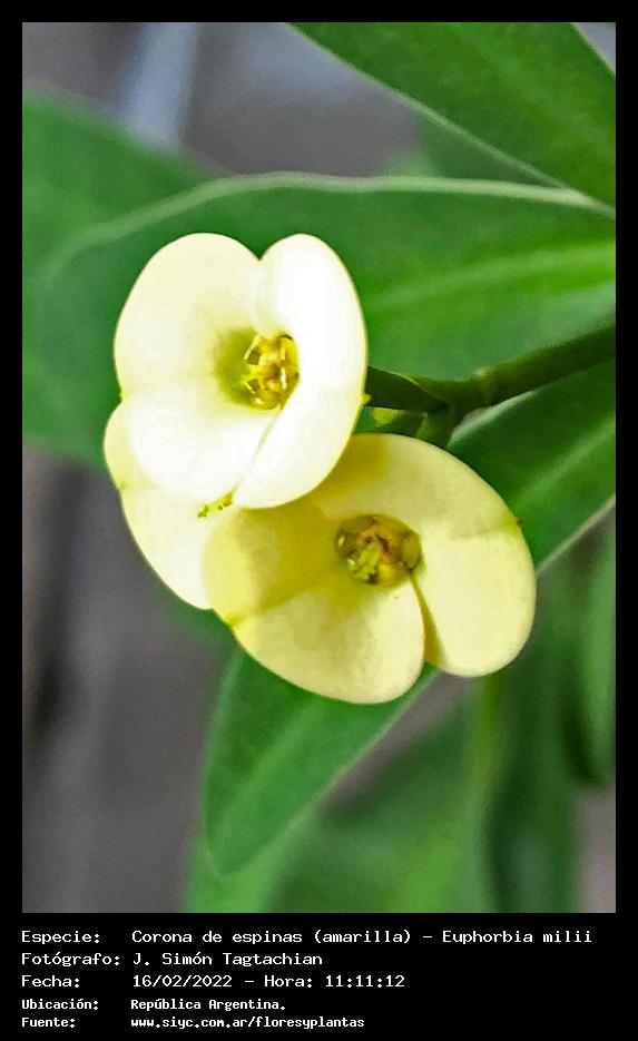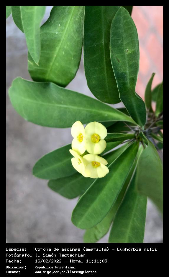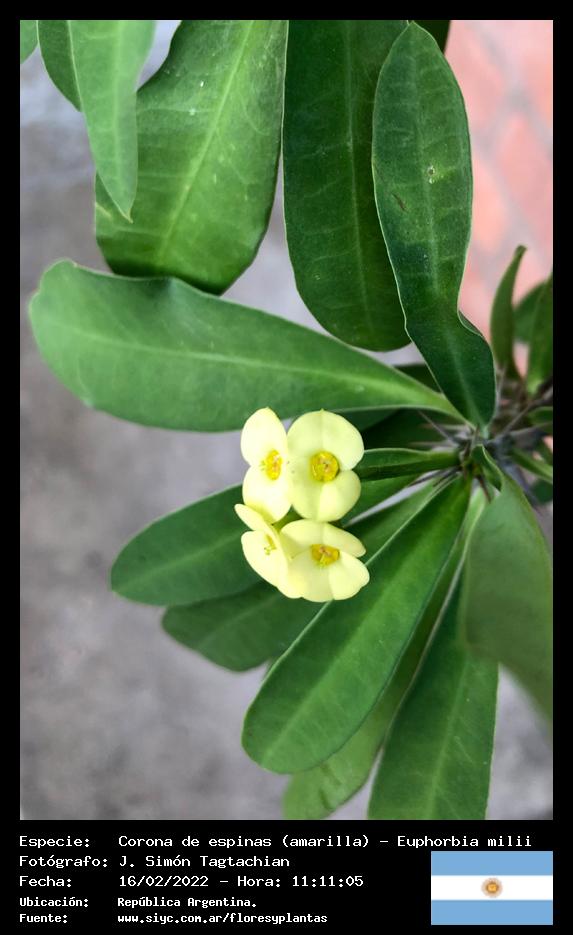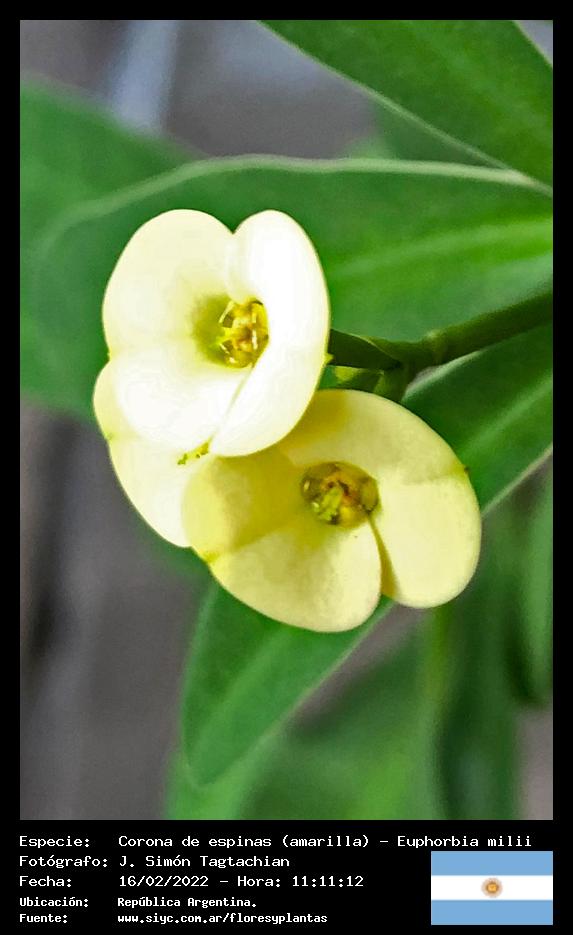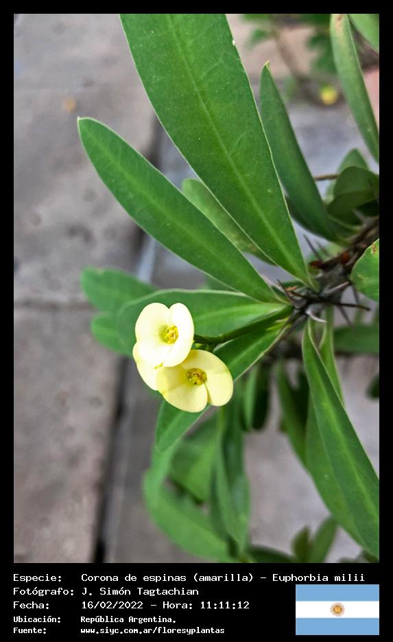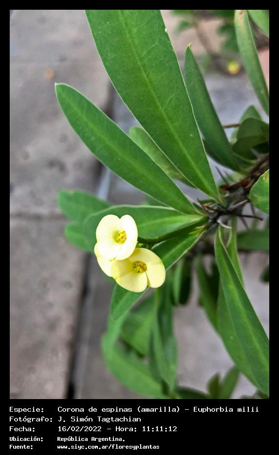 Corona de espinas (amarilla) - Espina de Cristo - (Euphorbia milii) - Especie exótica para Argentina