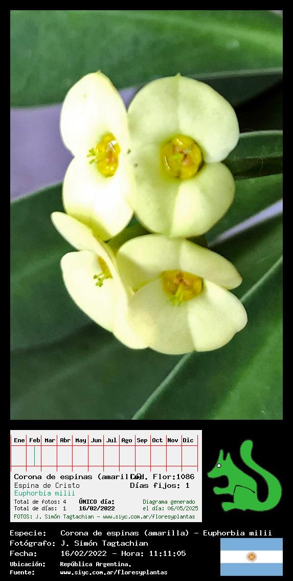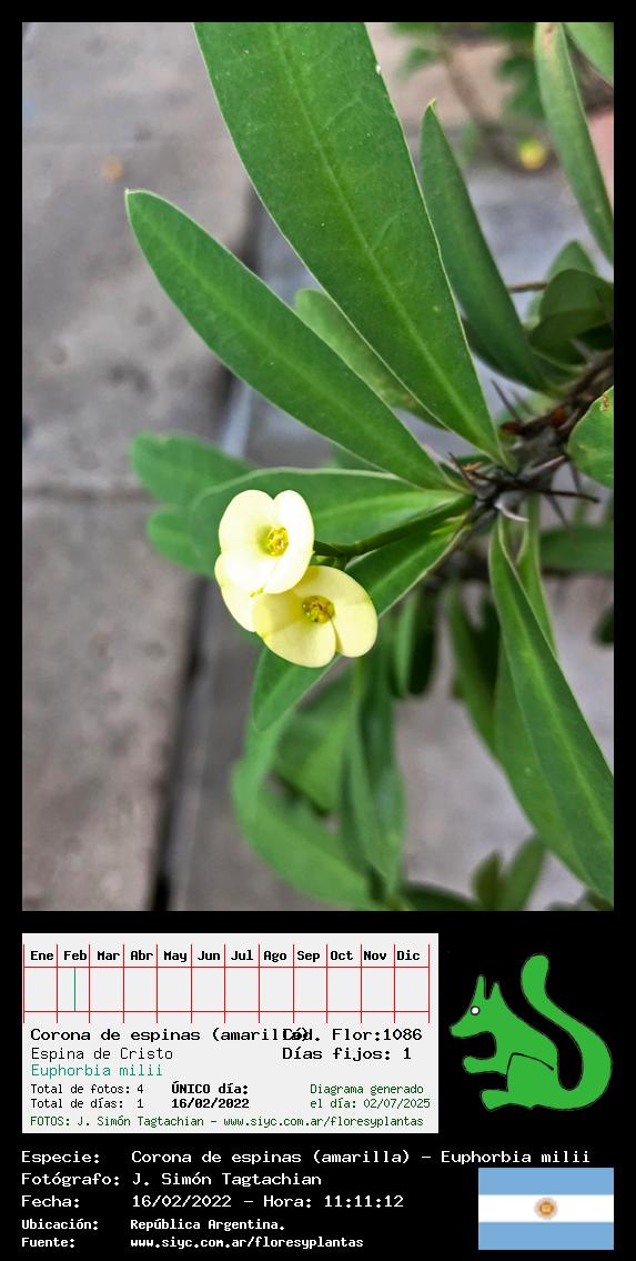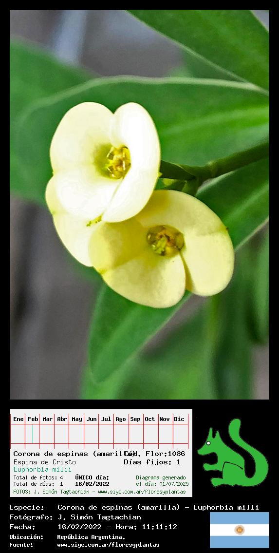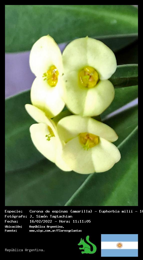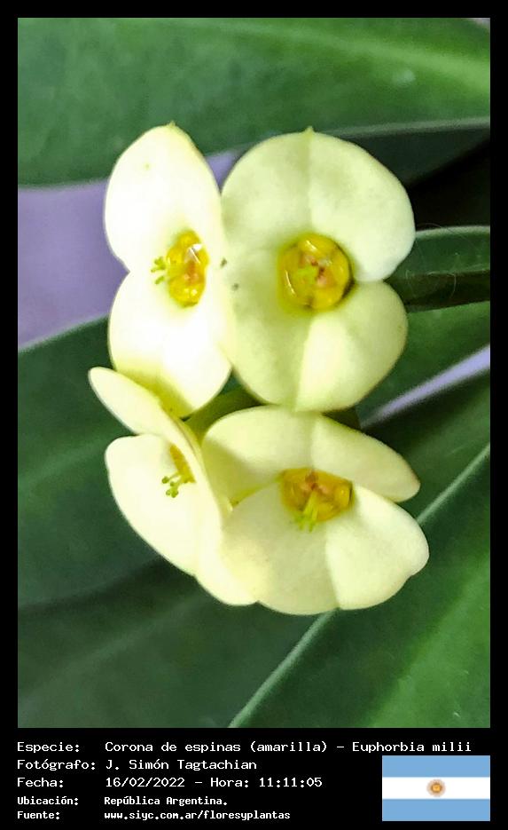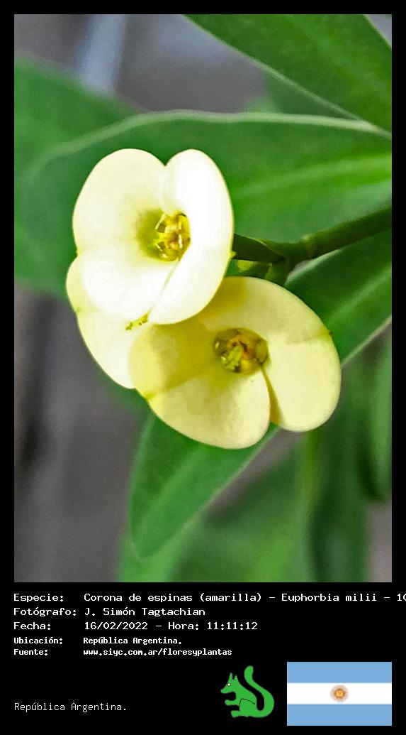 Corona de espinas (amarilla) - Espina de Cristo - (Euphorbia milii) - Especie exótica para Argentina