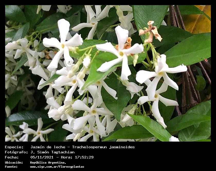 Jazmín de leche - Jazmín hélice - (Trachelospermun jasminoides) - Especie exótica para Argentina