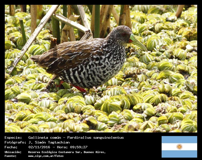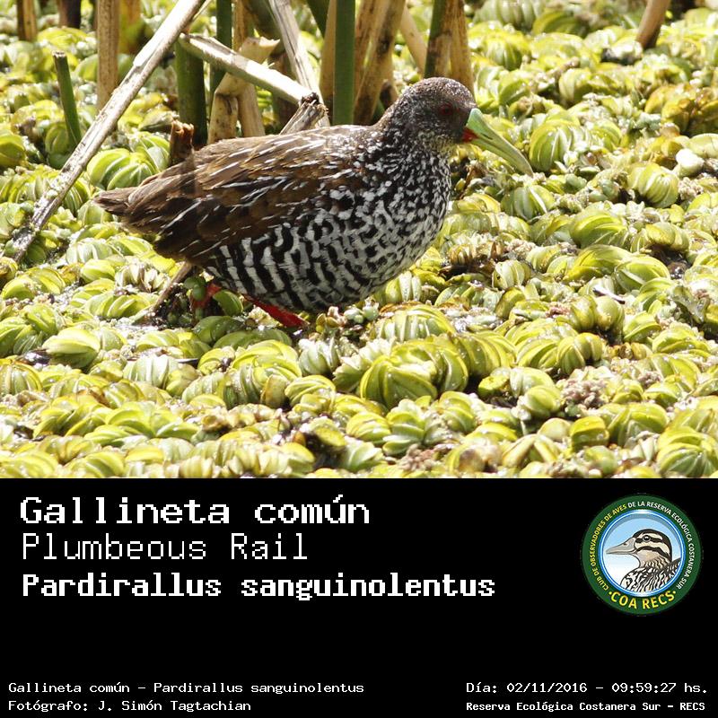 | 4 | 3206 - Gallineta común - (Pardirallus sanguinolentus) |