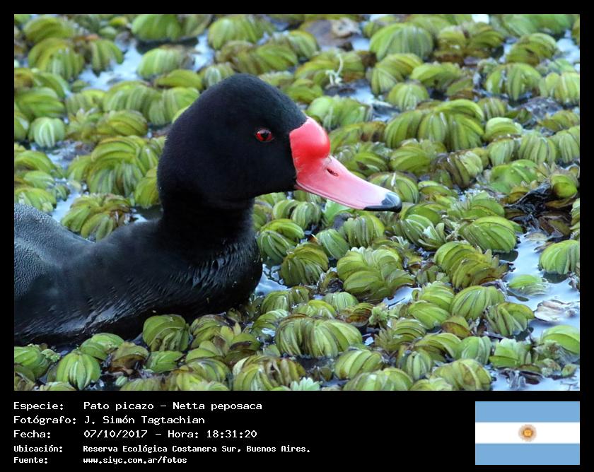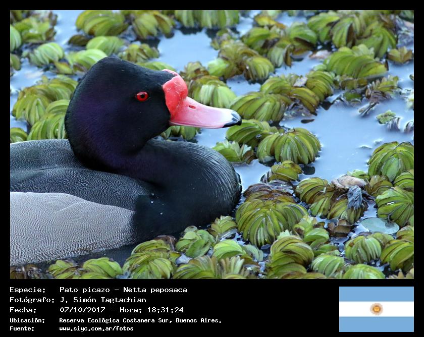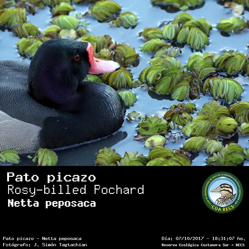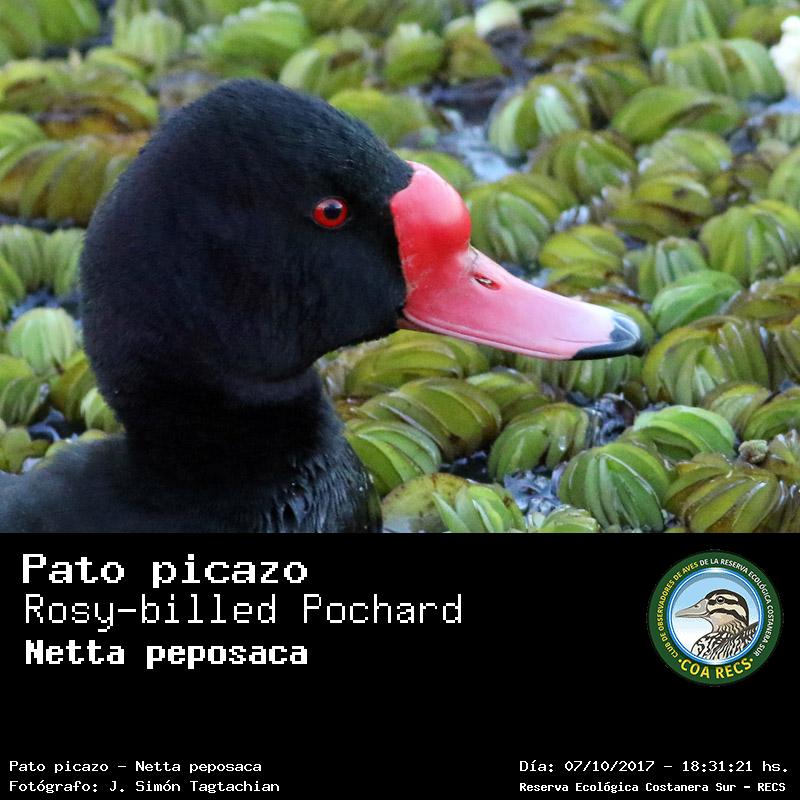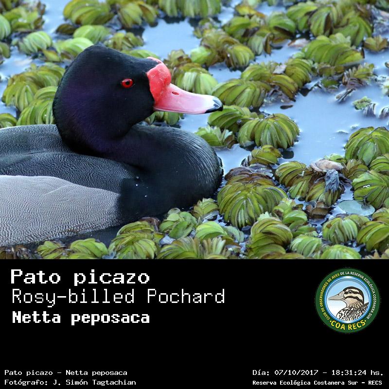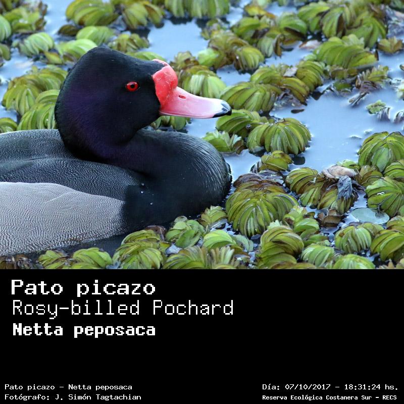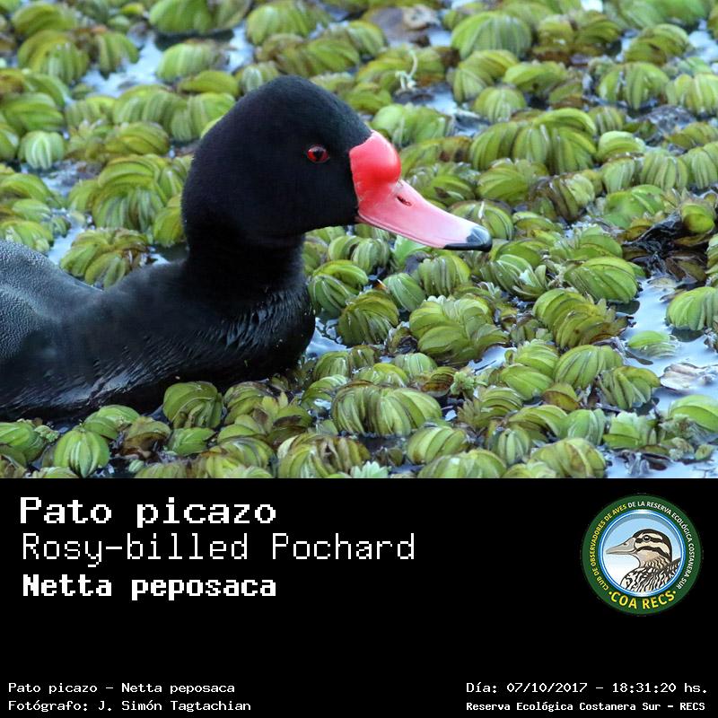 Pato picazo - Rosy-billed Pochard - (Netta peposaca)
