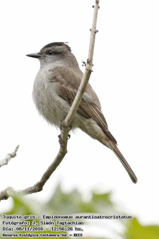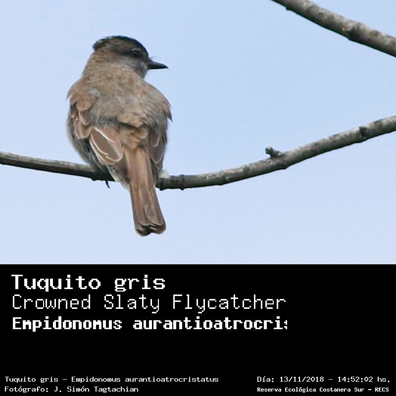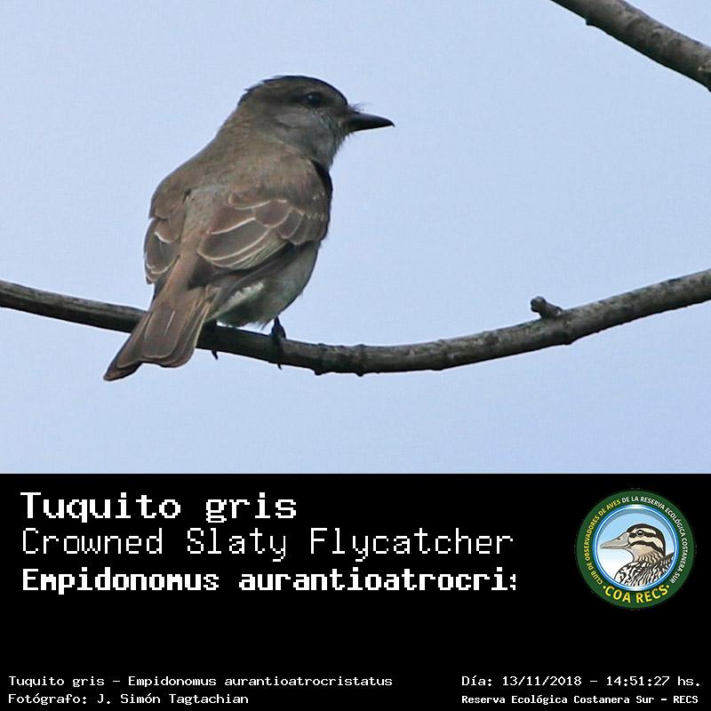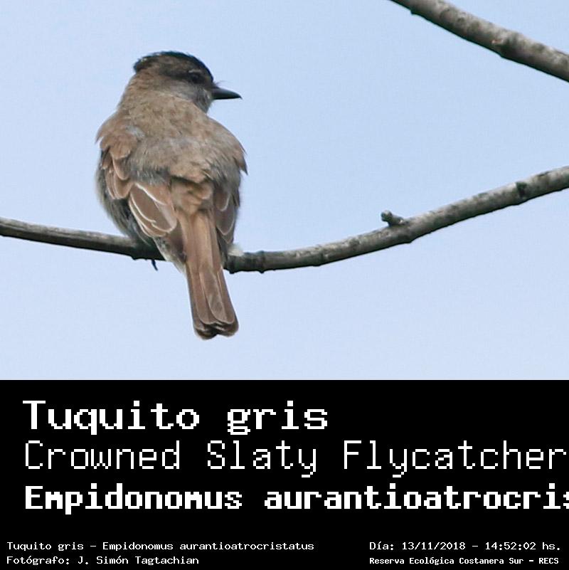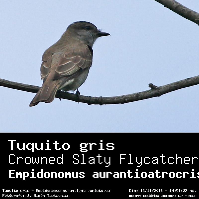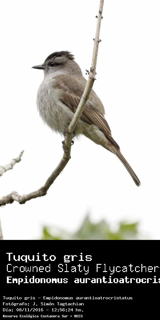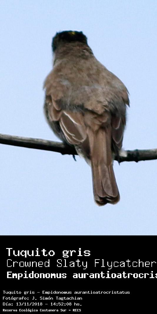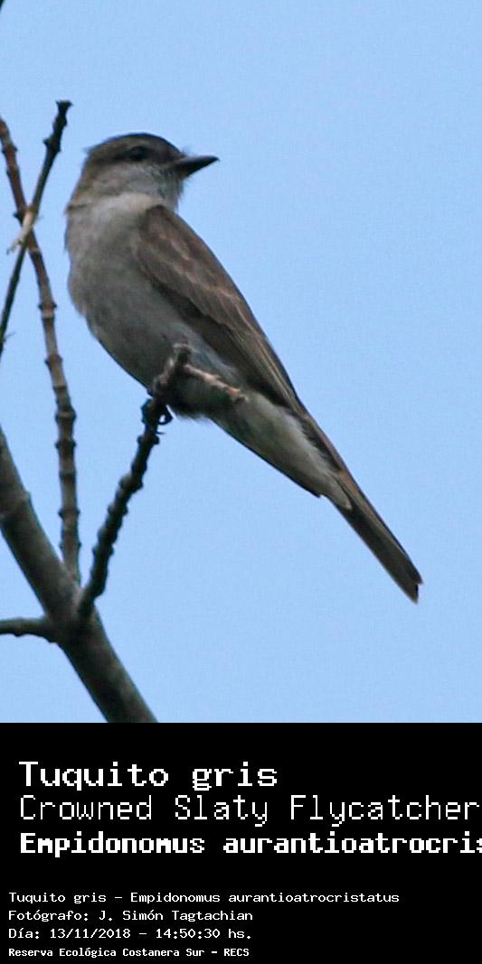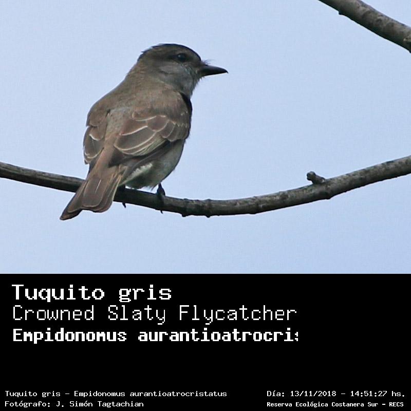 Tuquito gris - Crowned Slaty Flycatcher - (Empidonomus aurantioatrocristatus)