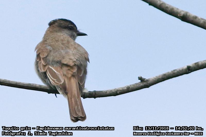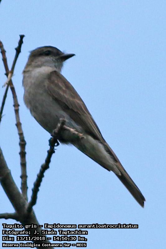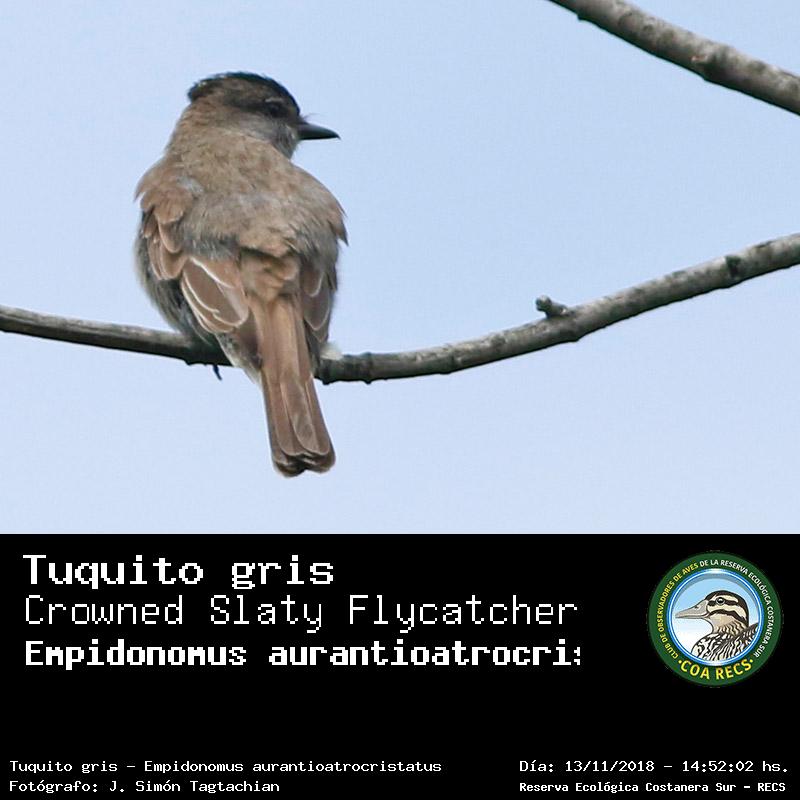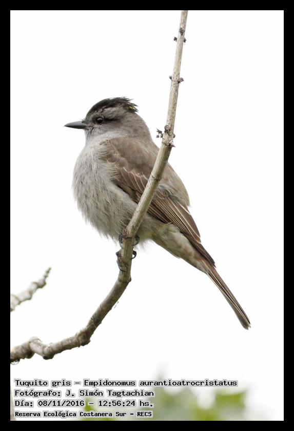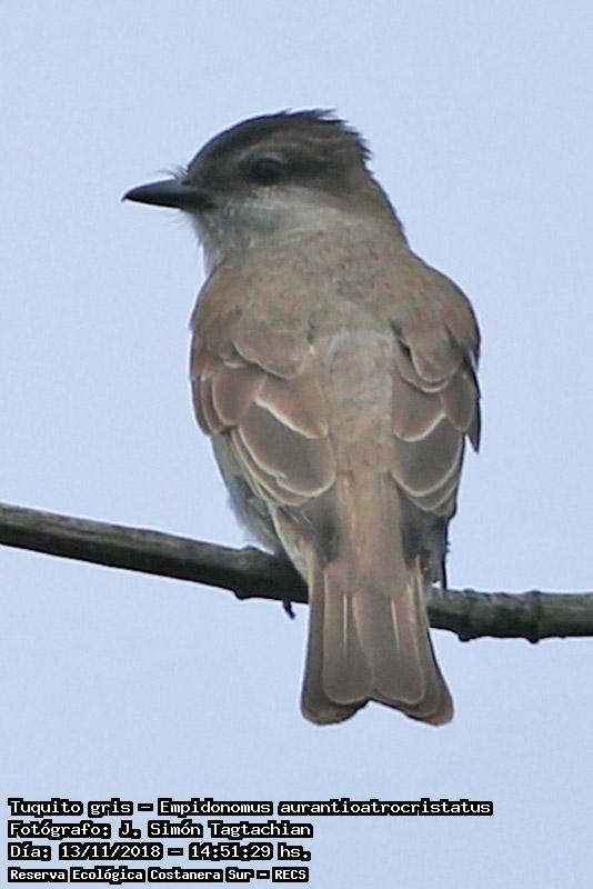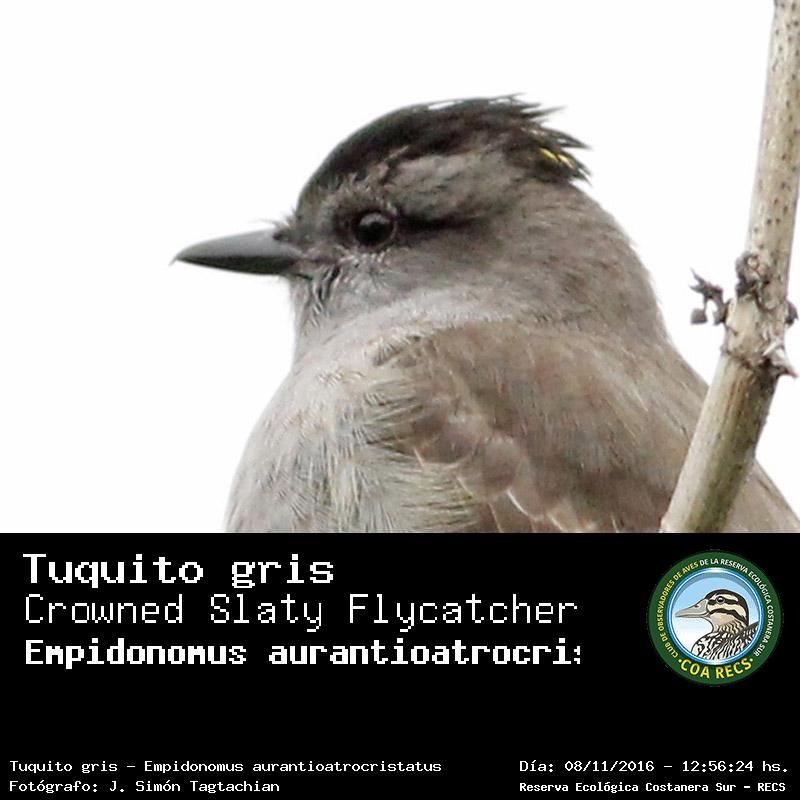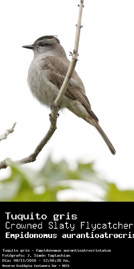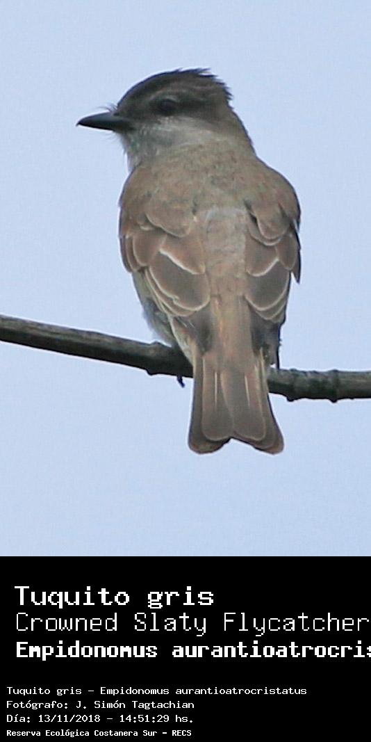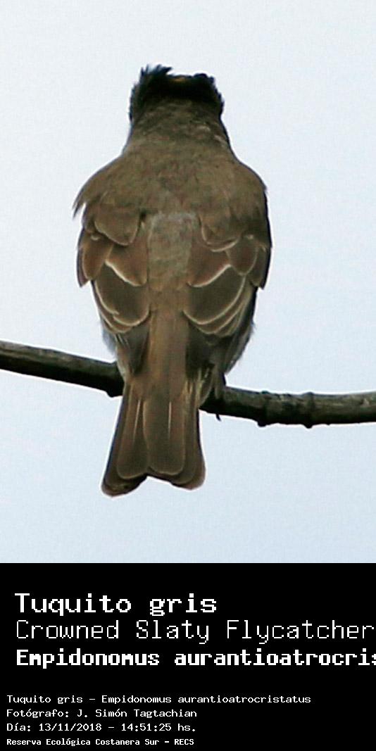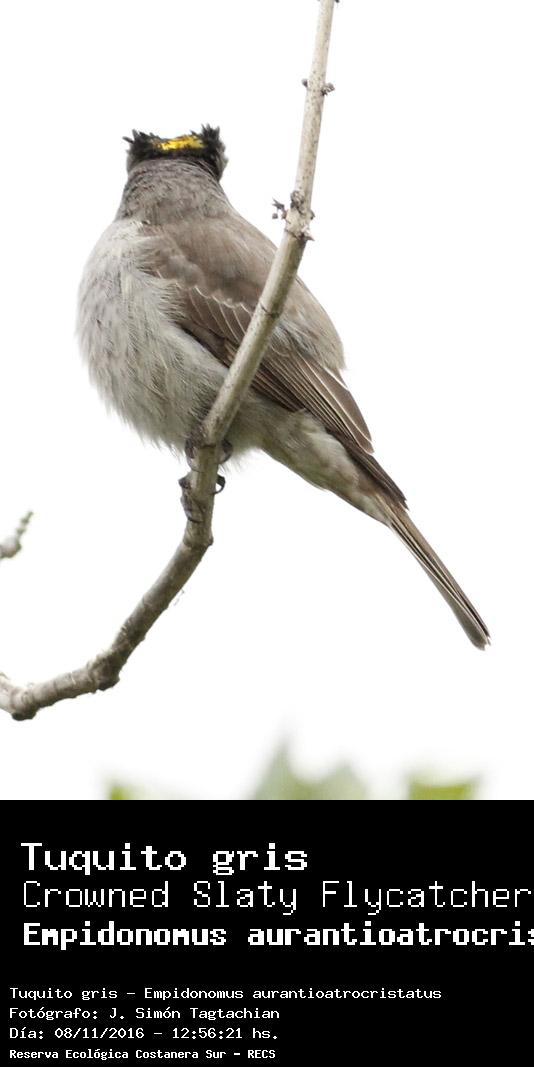 Tuquito gris - Crowned Slaty Flycatcher - (Empidonomus aurantioatrocristatus)