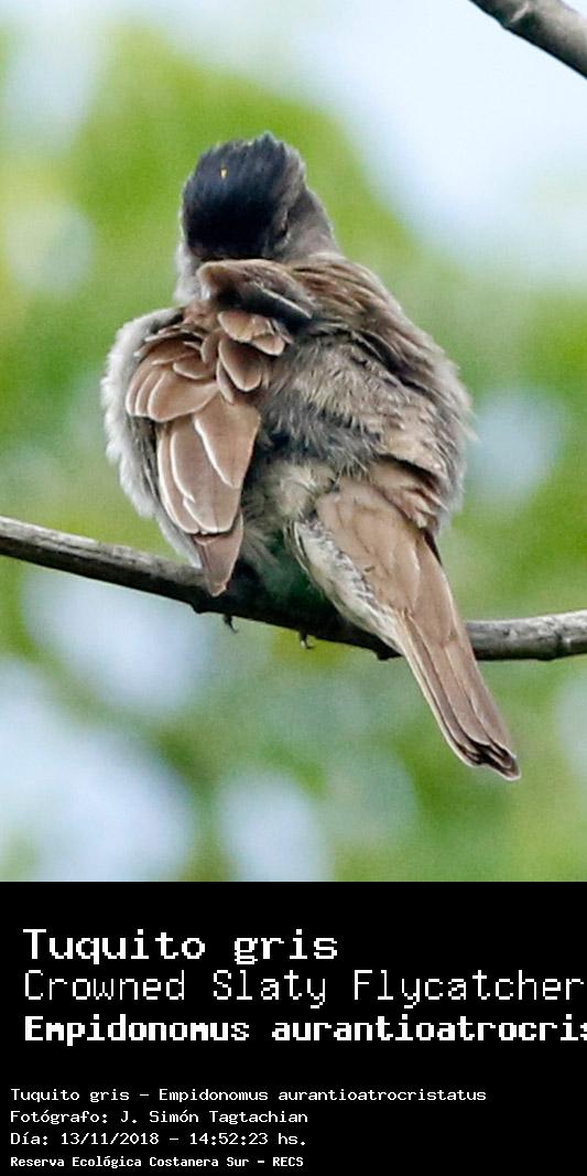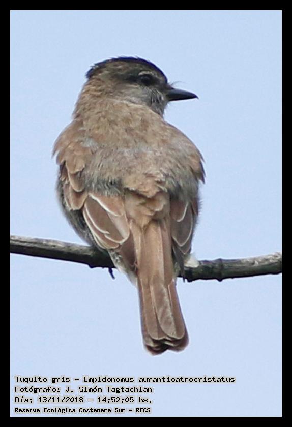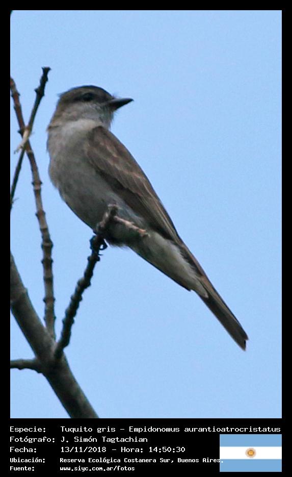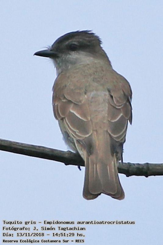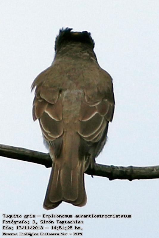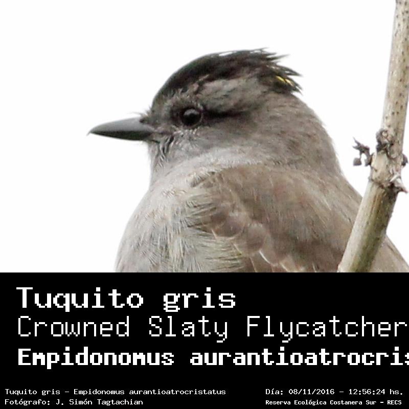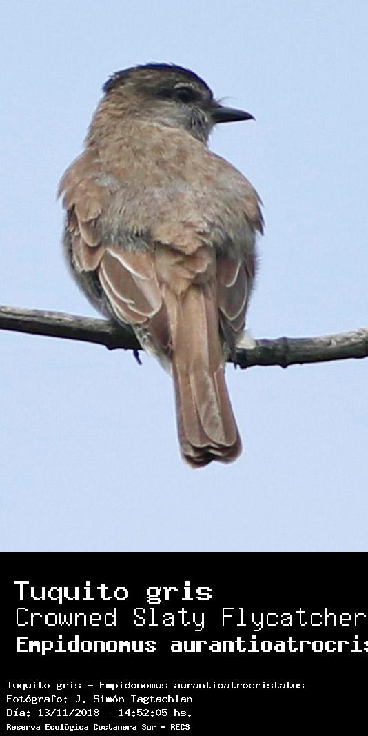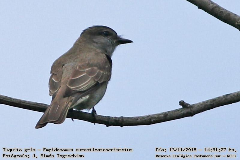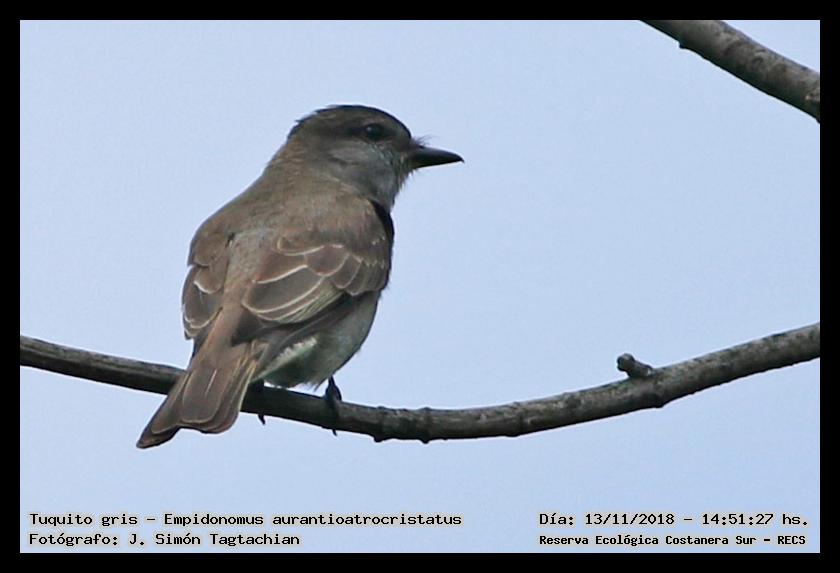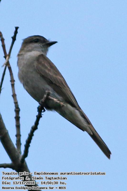 Tuquito gris - Crowned Slaty Flycatcher - (Empidonomus aurantioatrocristatus)