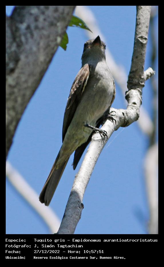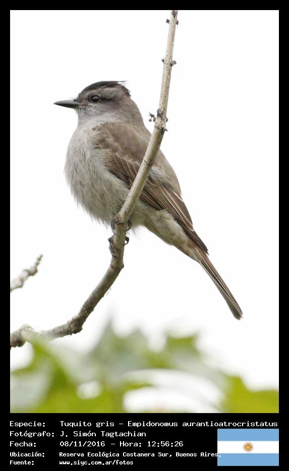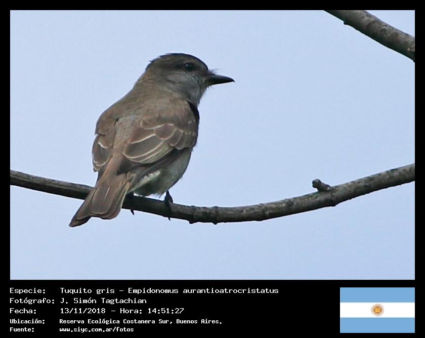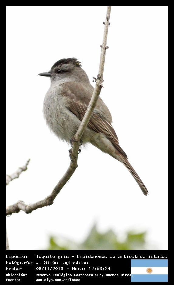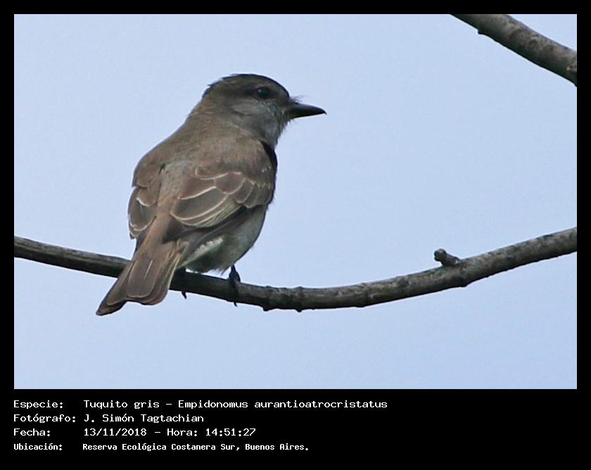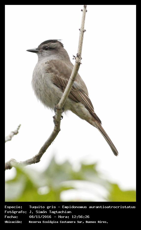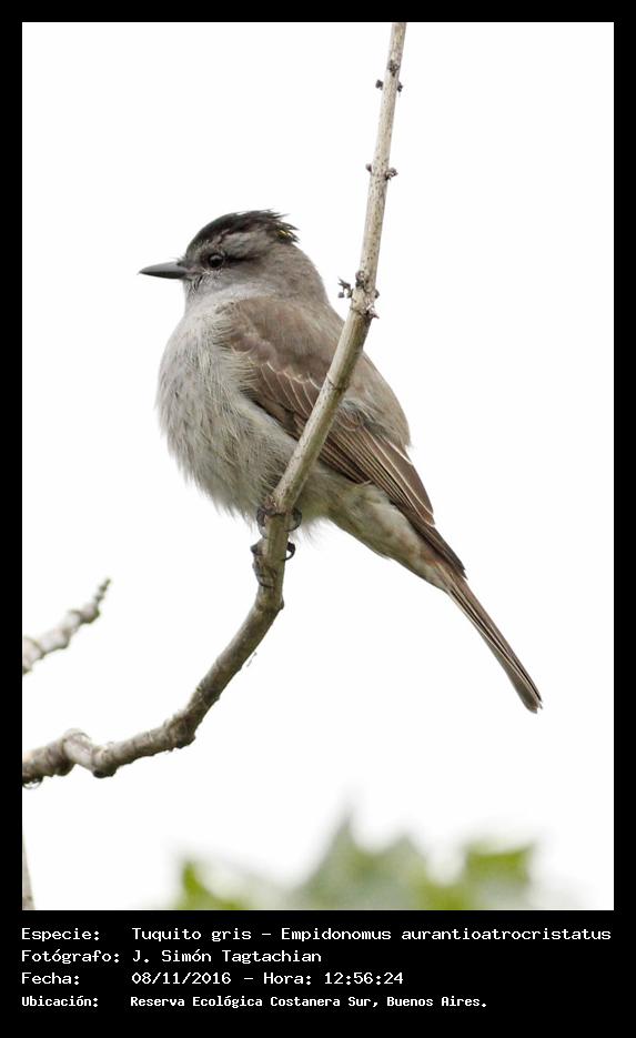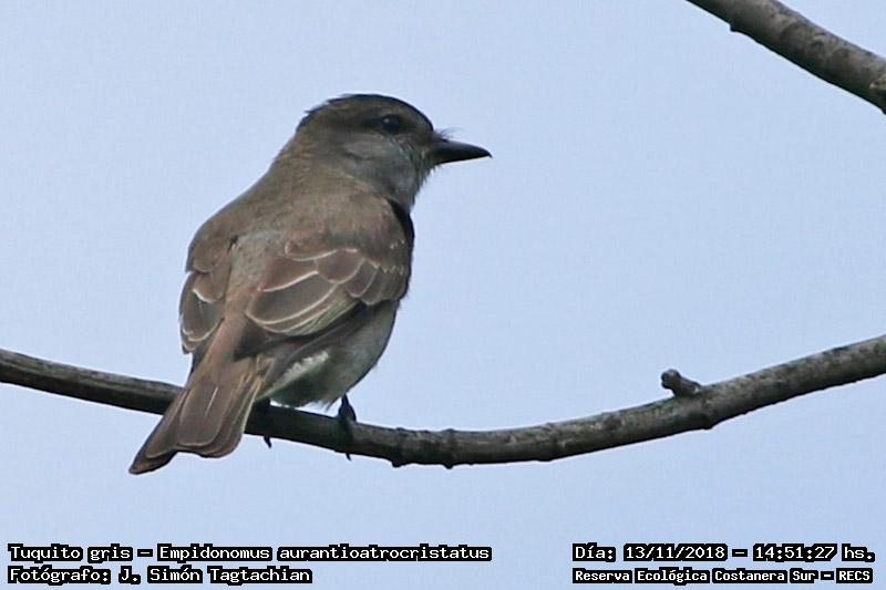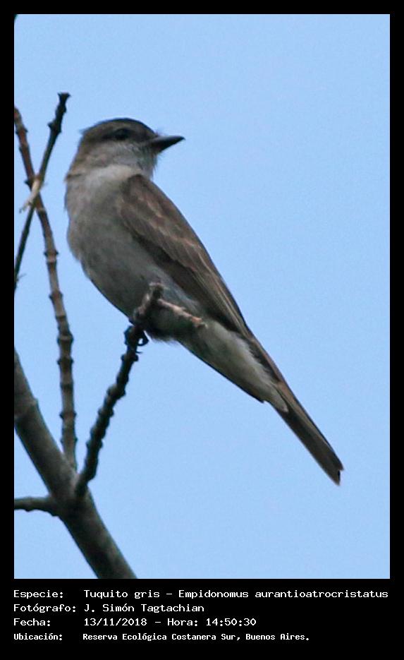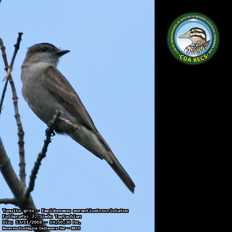 Tuquito gris - Crowned Slaty Flycatcher - (Empidonomus aurantioatrocristatus)