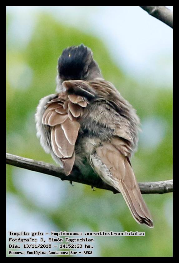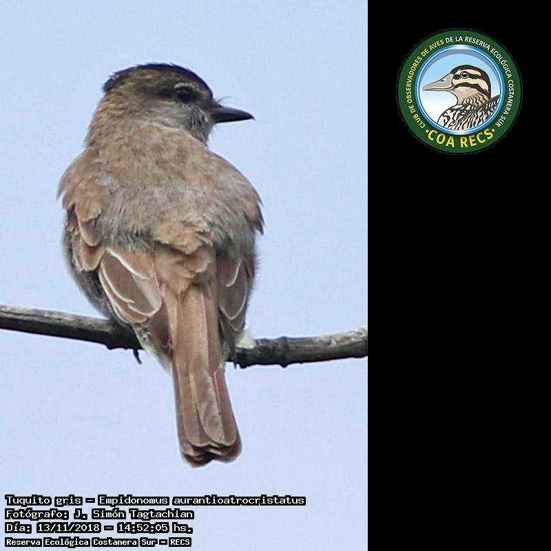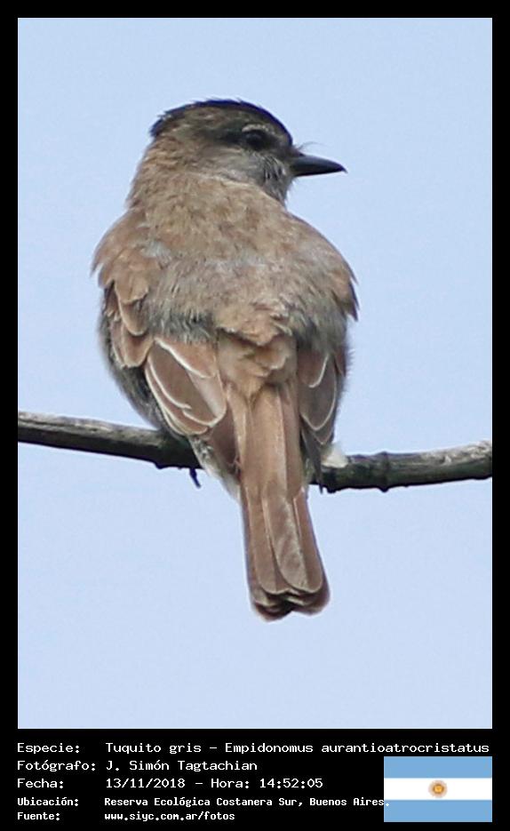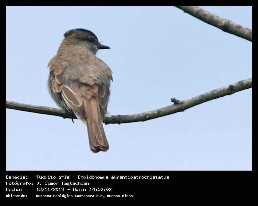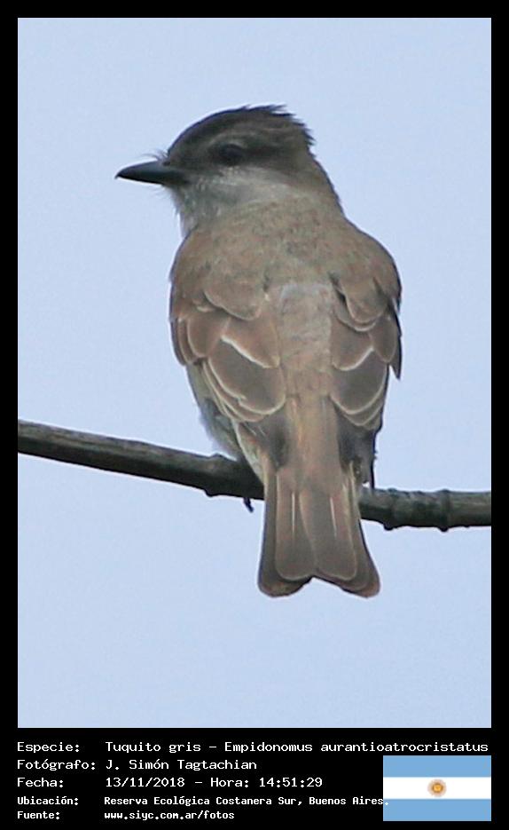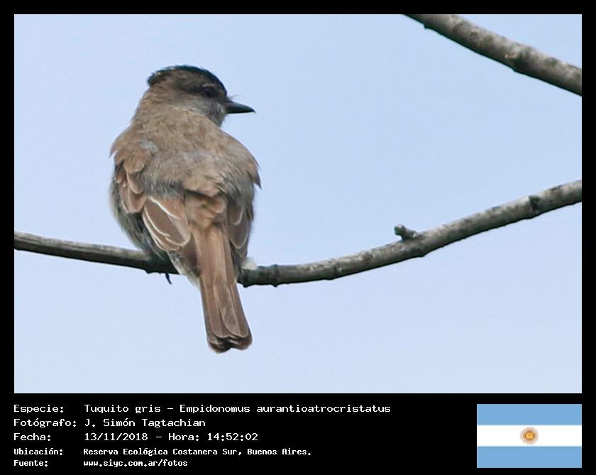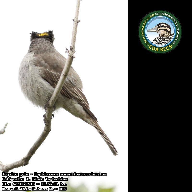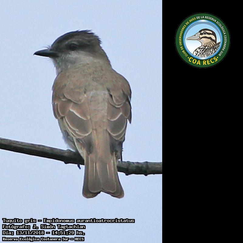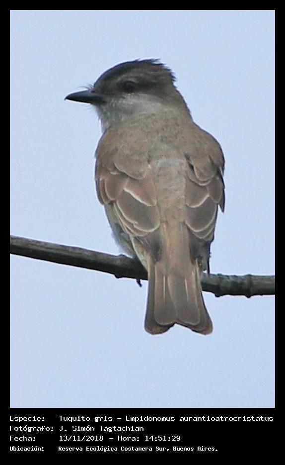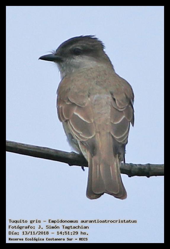 Tuquito gris - Crowned Slaty Flycatcher - (Empidonomus aurantioatrocristatus)