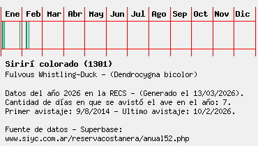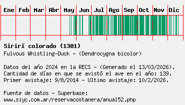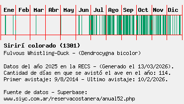 Lista avistajes en la RECS para una especie definida: 1301 - Sirirí colorado