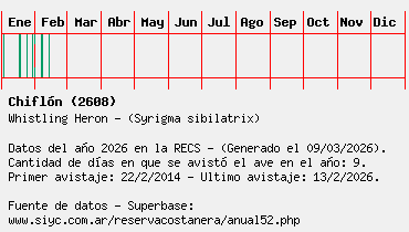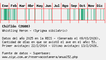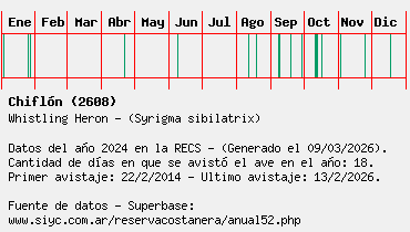 Lista avistajes en la RECS para una especie definida: 2608 - Chiflón