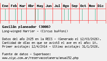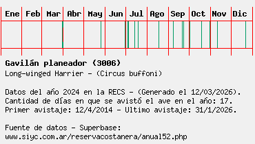 Lista avistajes en la RECS para una especie definida: 3006 - Gavilán planeador