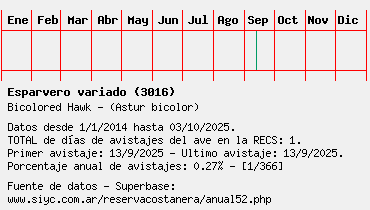 Lista avistajes en la RECS para una especie definida: 3016 - Esparvero variado