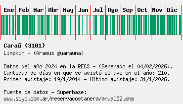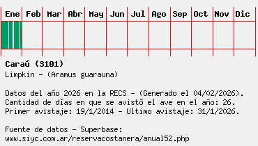 Lista avistajes en la RECS para una especie definida: 3101 - Caraú