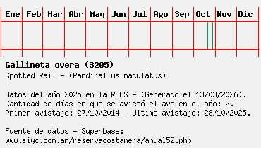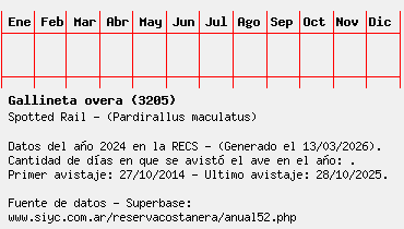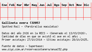 Lista avistajes en la RECS para una especie definida: 3205 - Gallineta overa