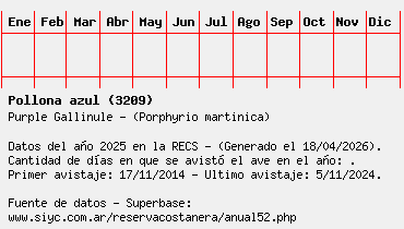 Lista avistajes en la RECS para una especie definida: 3209 - Pollona azul