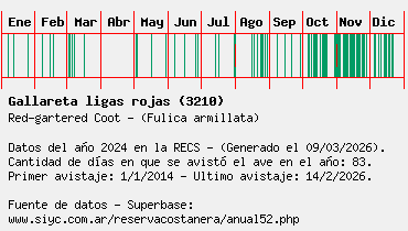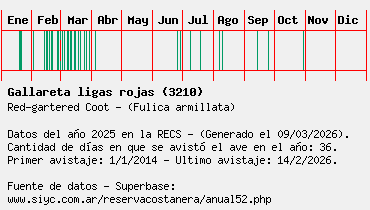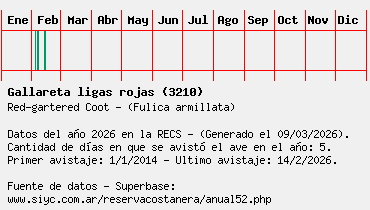 Lista avistajes en la RECS para una especie definida: 3210 - Gallareta ligas rojas