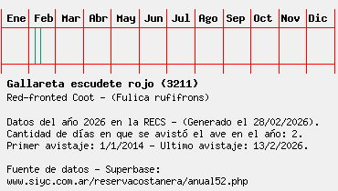 Lista avistajes en la RECS para una especie definida: 3211 - Gallareta escudete rojo