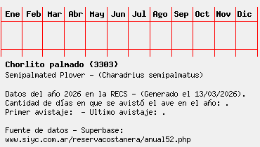 Lista avistajes en la RECS para una especie definida: 3303 - Chorlito palmado