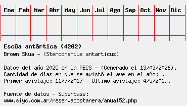 Lista avistajes en la RECS para una especie definida: 4202 - Escúa antártica