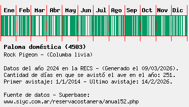 Lista avistajes en la RECS para una especie definida: 4503 - Paloma doméstica