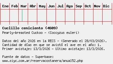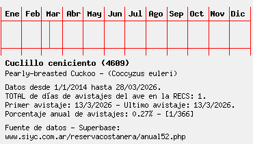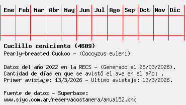 Lista avistajes en la RECS para una especie definida: 4609 - Cuclillo ceniciento