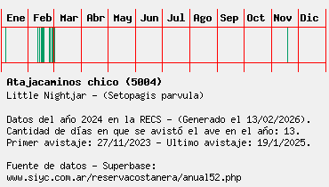 Lista avistajes en la RECS para una especie definida: 5004 - Atajacaminos chico
