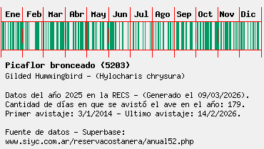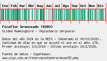 Lista avistajes en la RECS para una especie definida: 5203 - Picaflor bronceado