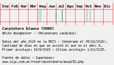 Lista avistajes en la RECS para una especie definida: 5505 - Carpintero blanco
