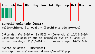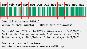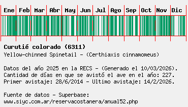 Lista avistajes en la RECS para una especie definida: 6311 - Curutié colorado