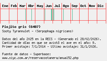 Lista avistajes en la RECS para una especie definida: 6407 - Piojito gris