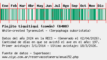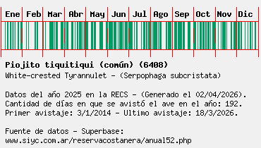 Lista avistajes en la RECS para una especie definida: 6408 - Piojito tiquitiqui