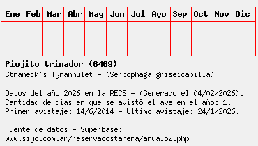 Lista avistajes en la RECS para una especie definida: 6409 - Piojito trinador