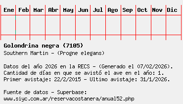 Lista avistajes en la RECS para una especie definida: 7105 - Golondrina negra