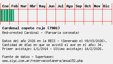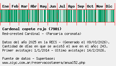 Lista avistajes en la RECS para una especie definida: 7901 - Cardenal copete rojo
