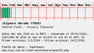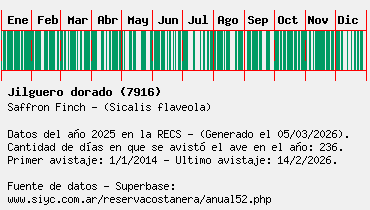 Lista avistajes en la RECS para una especie definida: 7916 - Jilguero dorado