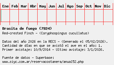 Lista avistajes en la RECS para una especie definida: 7924 - Brasita de fuego
