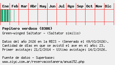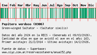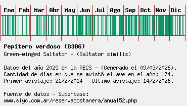 Lista avistajes en la RECS para una especie definida: 8306 - Pepitero verdoso