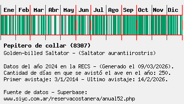 Lista avistajes en la RECS para una especie definida: 8307 - Pepitero de collar