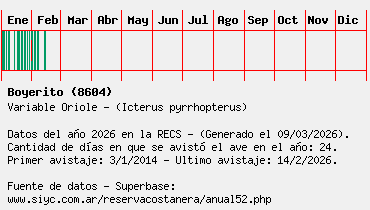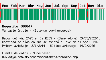 Lista avistajes en la RECS para una especie definida: 8604 - Boyerito