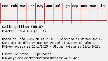 Lista avistajes en la RECS para una especie definida: 9913 - Gallo gallina