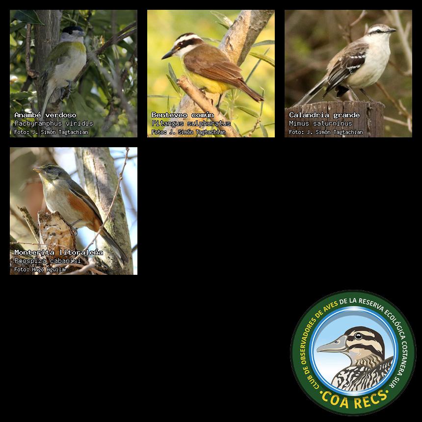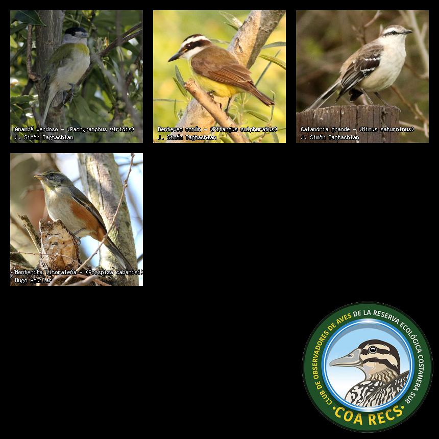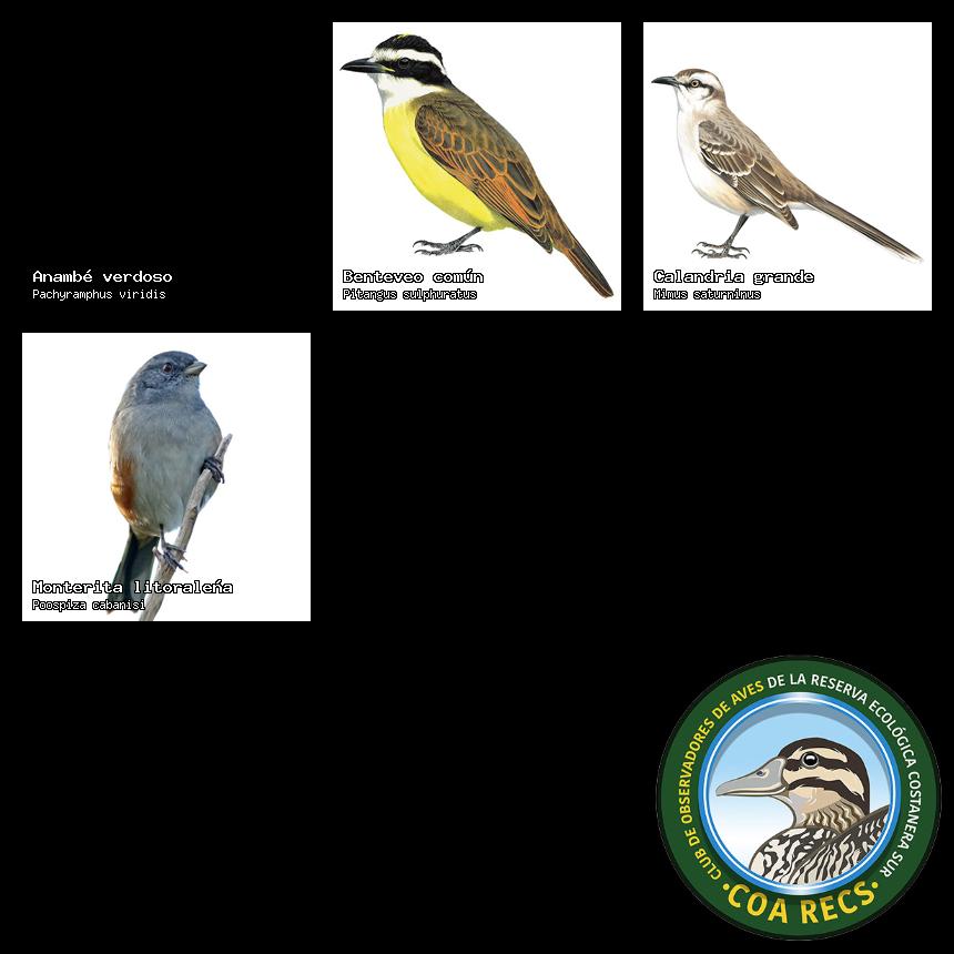(Gavilán mixto, Carancho, Chimango, Benteveo común, Hornero, Carpintero real y Estornino pinto)