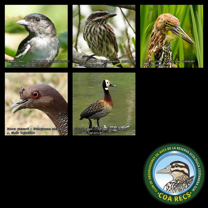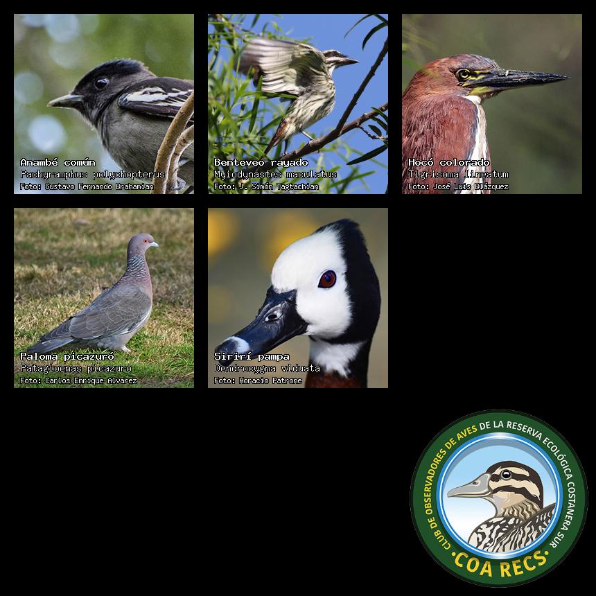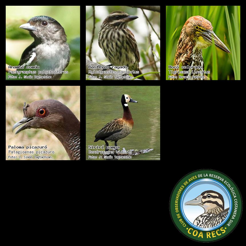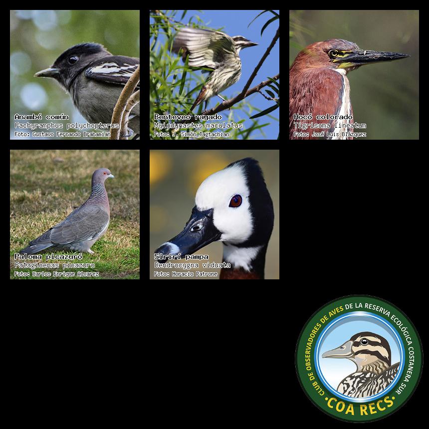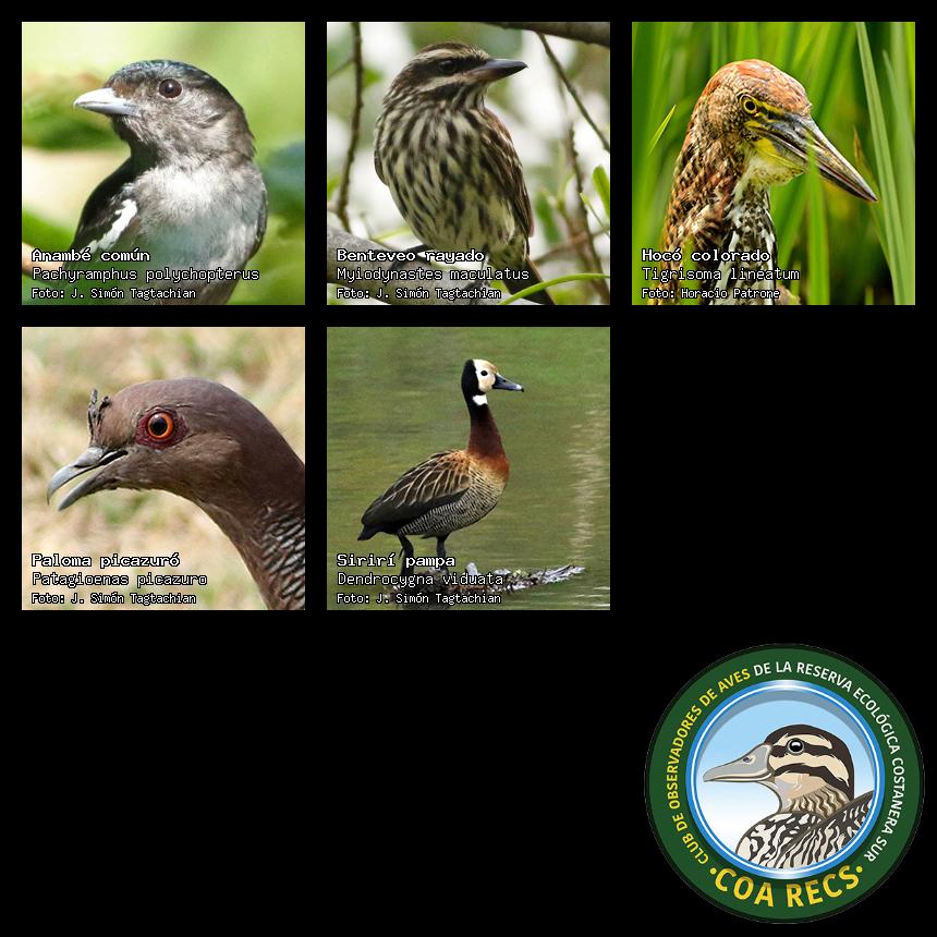 (Gavilán mixto, Carancho, Chimango, Benteveo común, Hornero, Carpintero real y Estornino pinto)