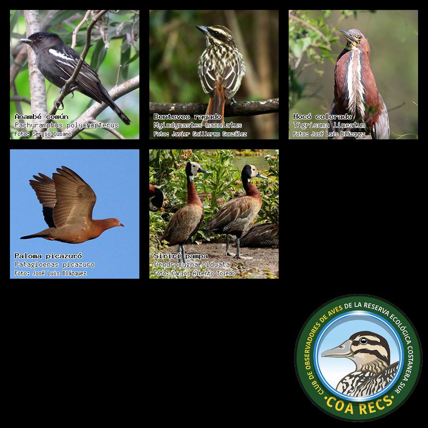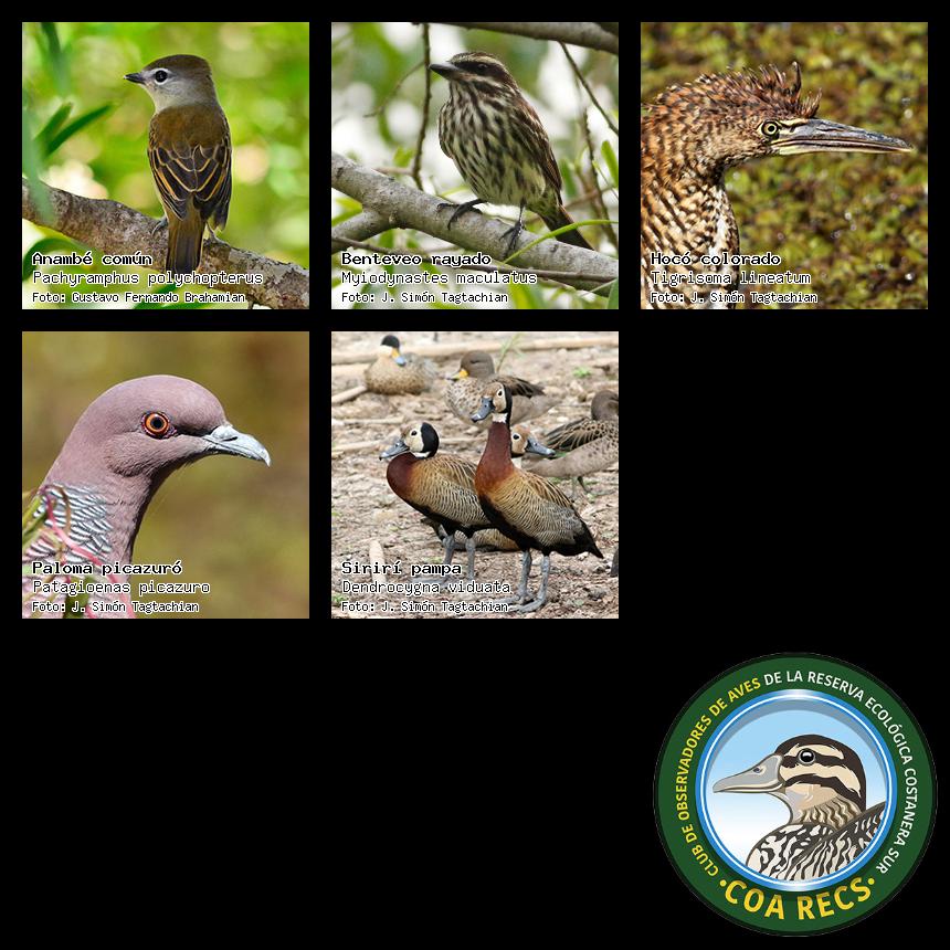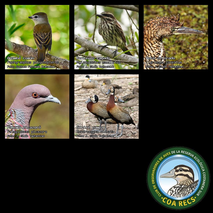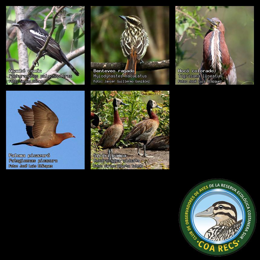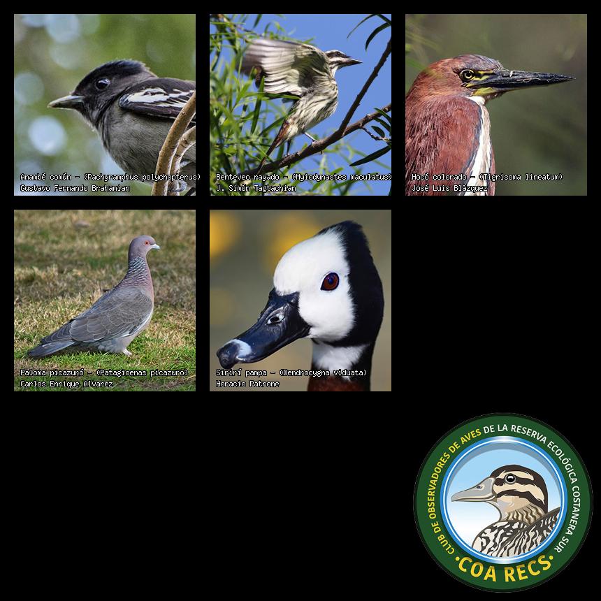 (Gavilán mixto, Carancho, Chimango, Benteveo común, Hornero, Carpintero real y Estornino pinto)