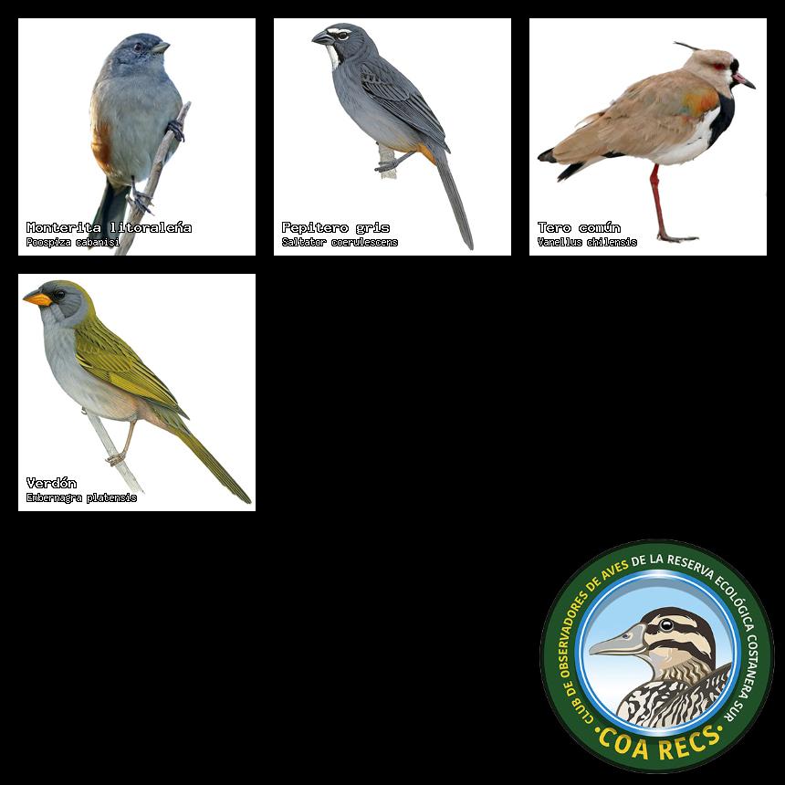 (Gavilán mixto, Carancho, Chimango, Benteveo común, Hornero, Carpintero real y Estornino pinto)