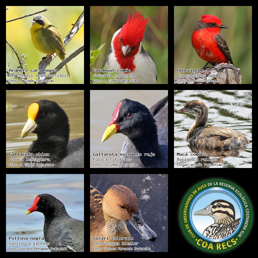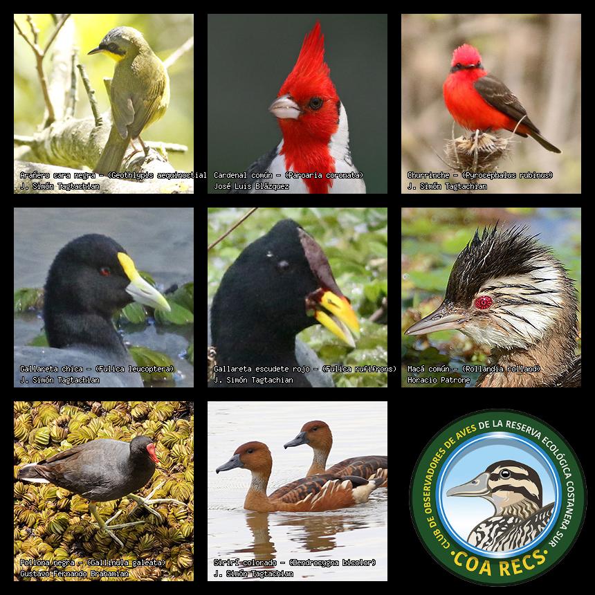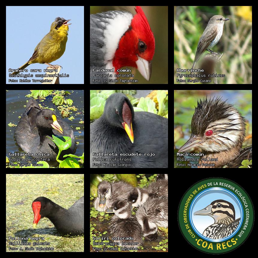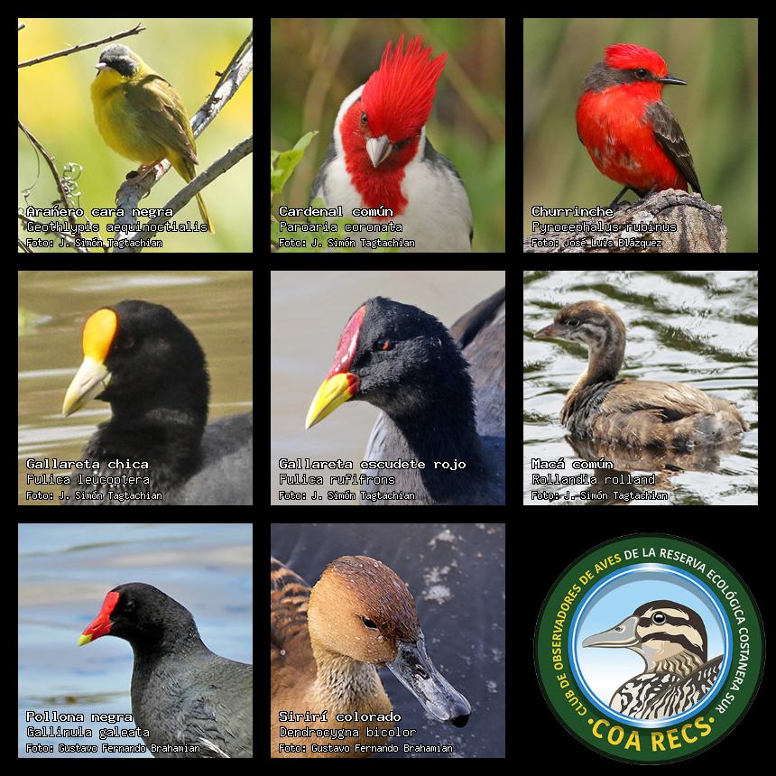 (Gavilán mixto, Carancho, Chimango, Benteveo común, Hornero, Carpintero real y Estornino pinto)