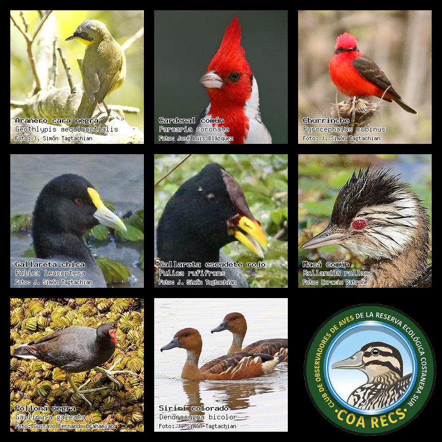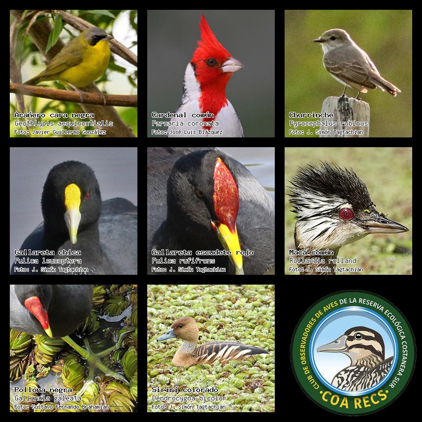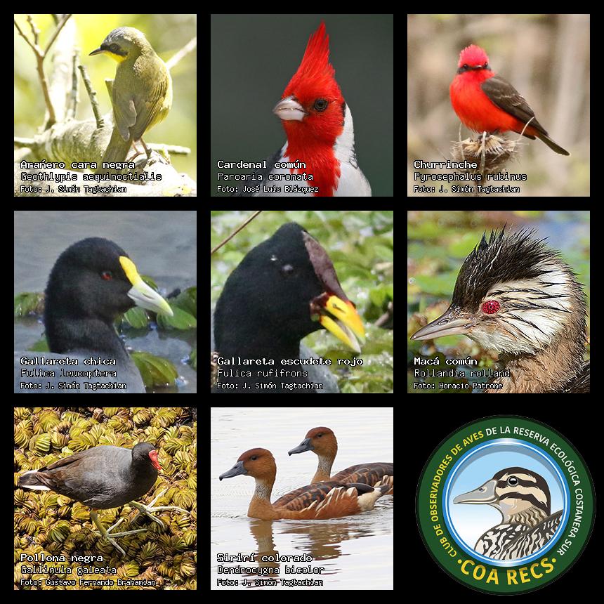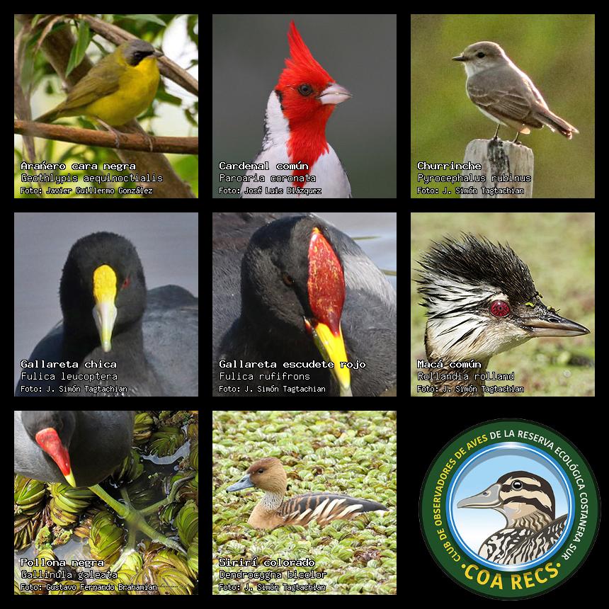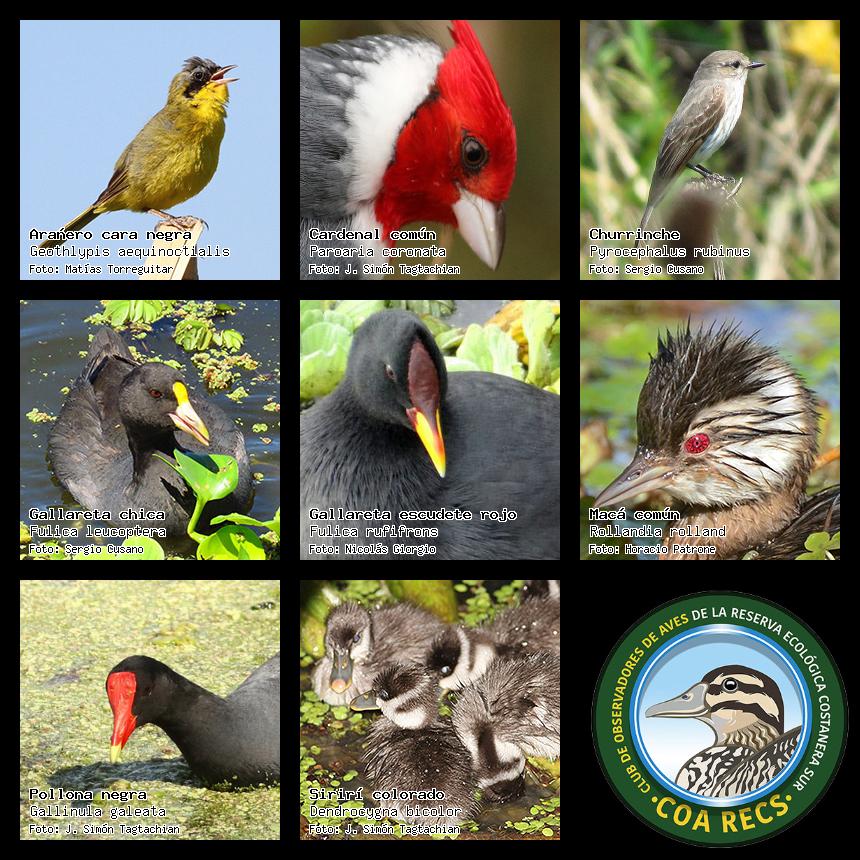 (Gavilán mixto, Carancho, Chimango, Benteveo común, Hornero, Carpintero real y Estornino pinto)