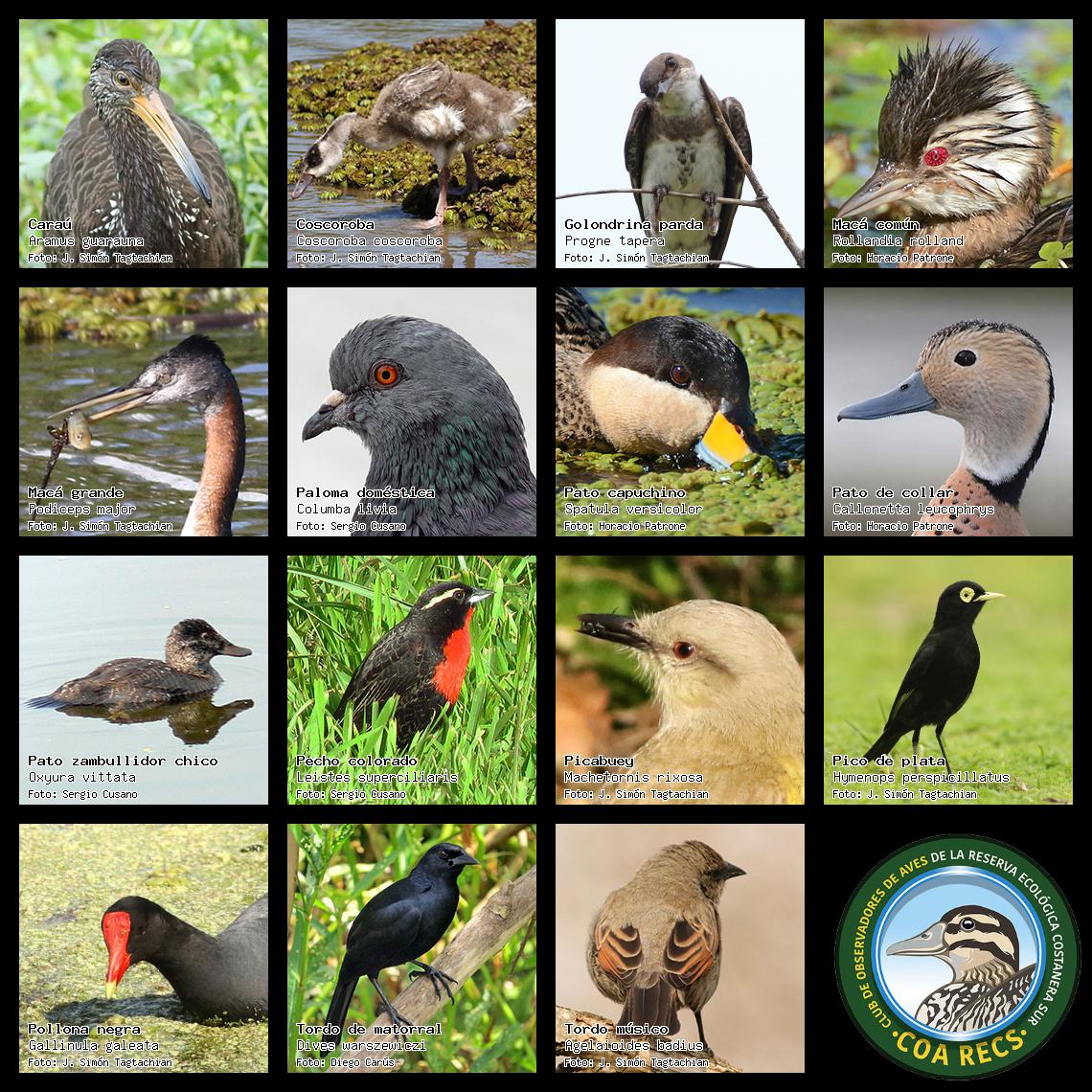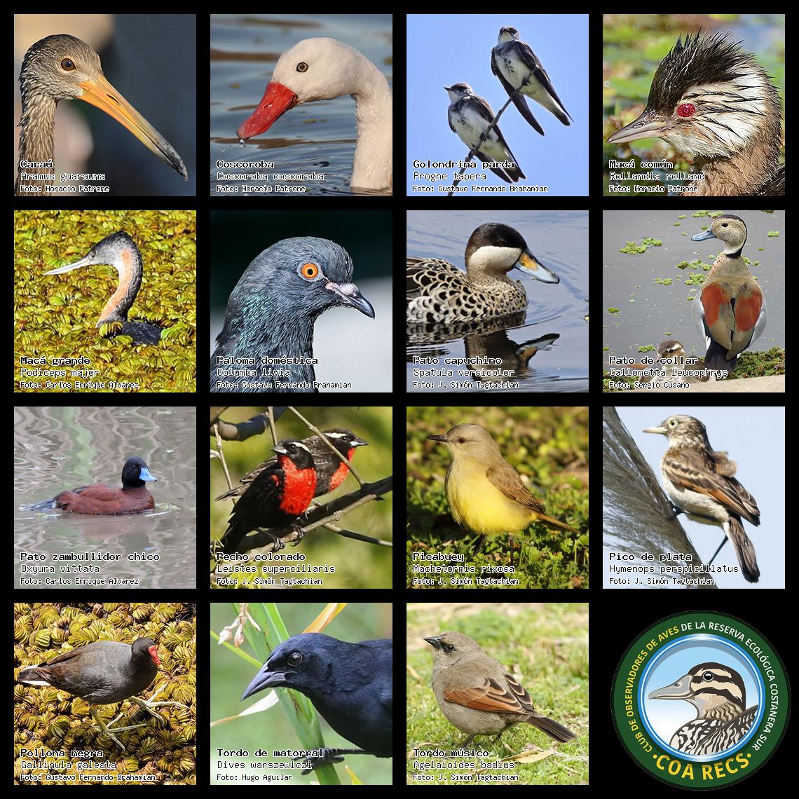 (Gavilán mixto, Carancho, Chimango, Benteveo común, Hornero, Carpintero real y Estornino pinto)