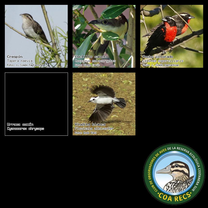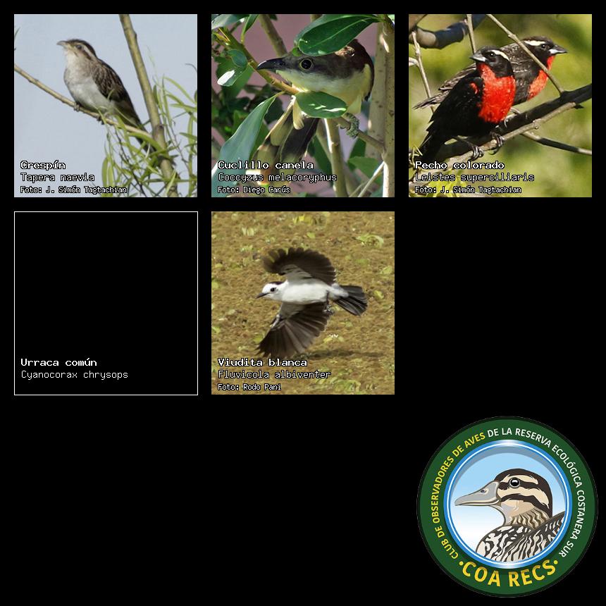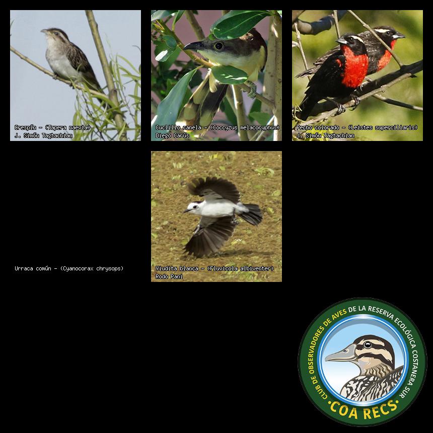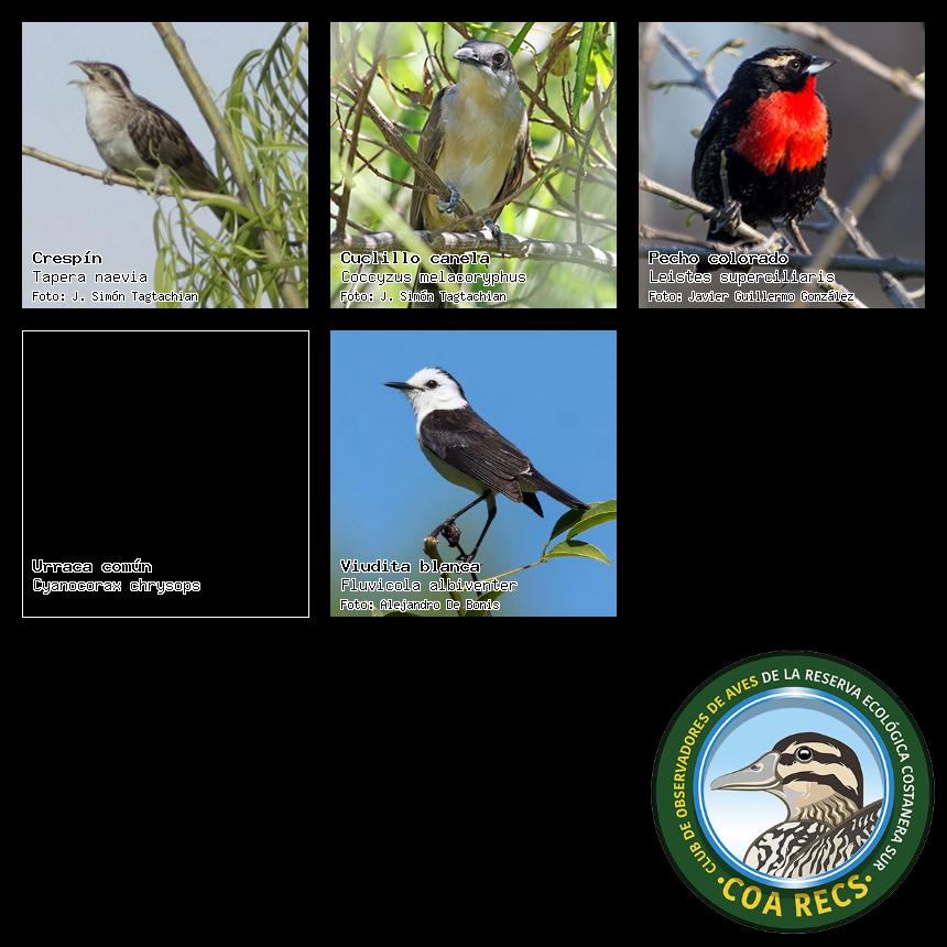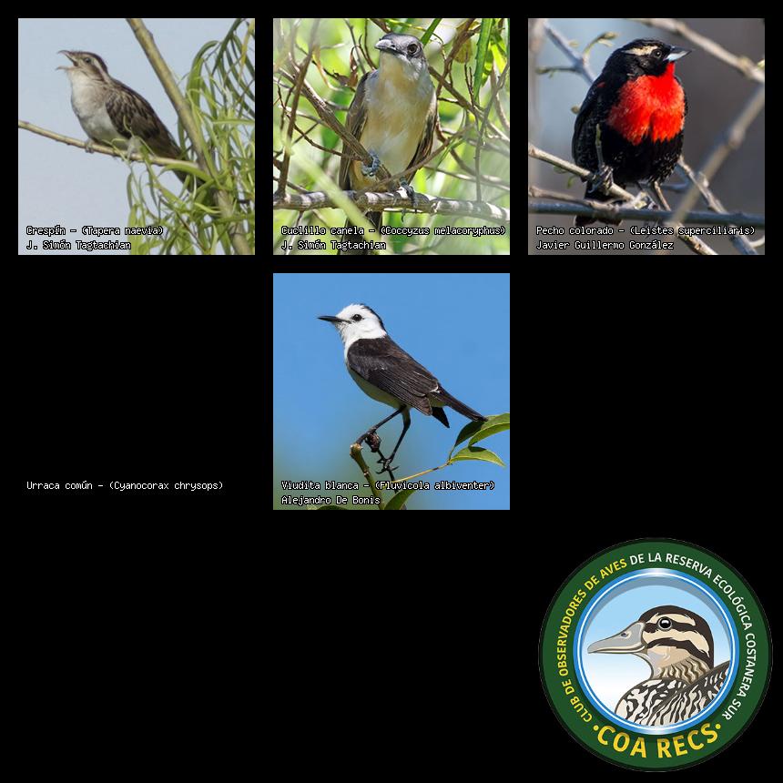 (Gavilán mixto, Carancho, Chimango, Benteveo común, Hornero, Carpintero real y Estornino pinto)