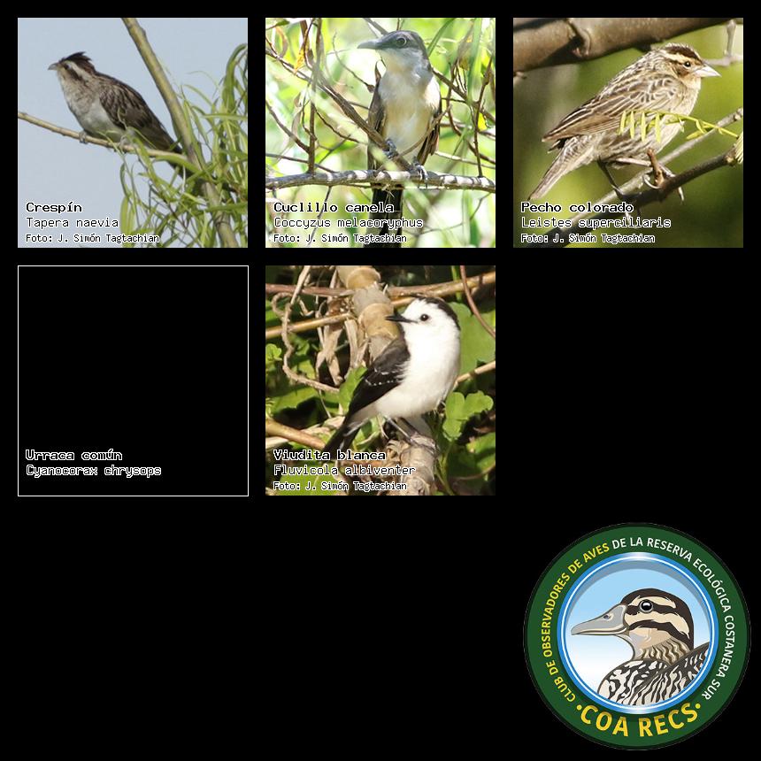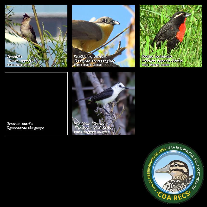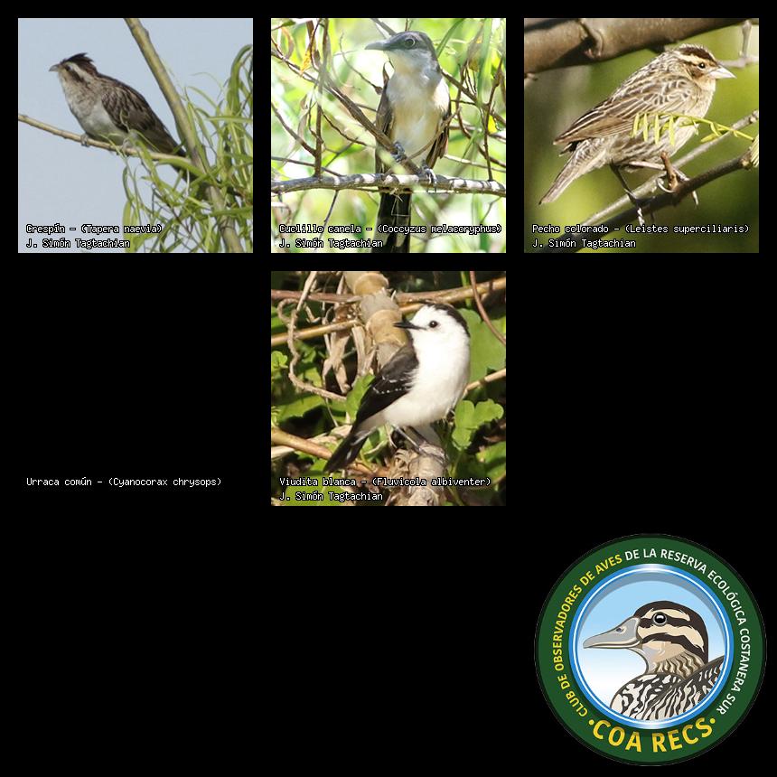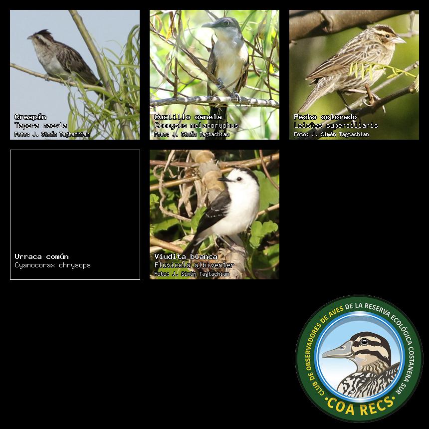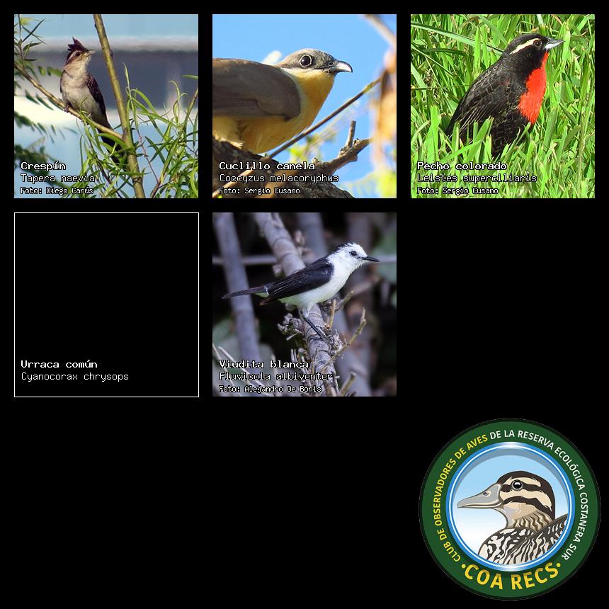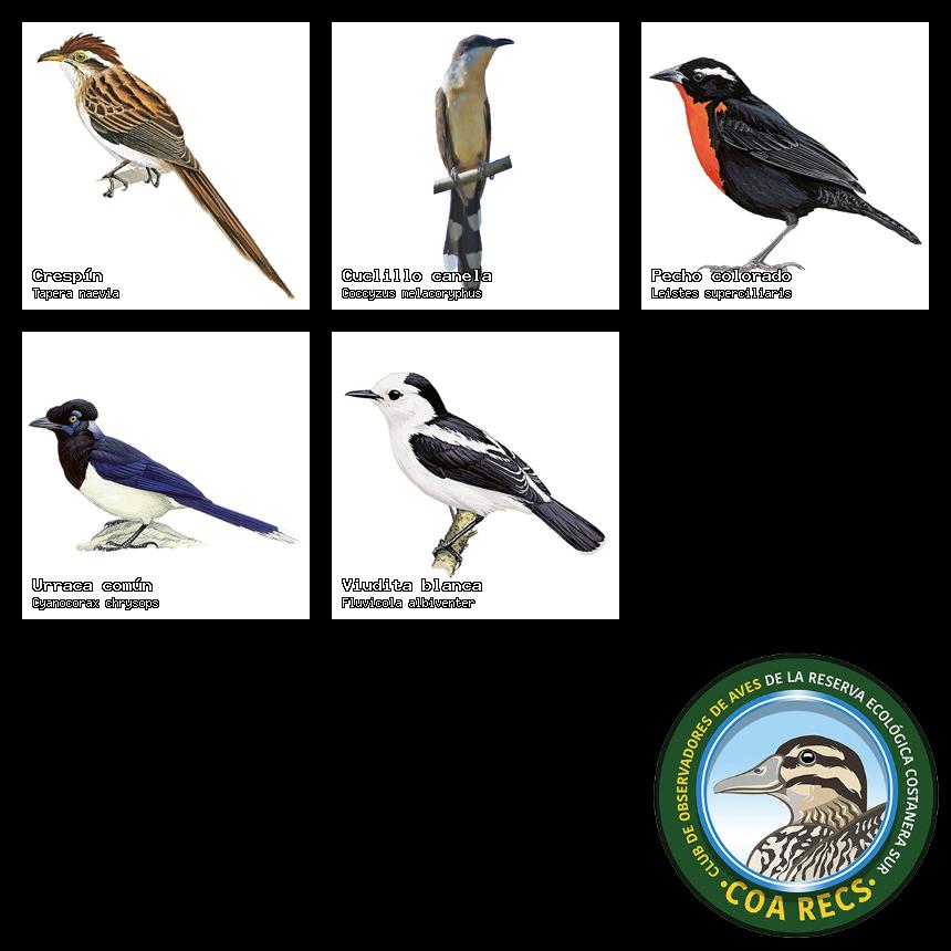 (Gavilán mixto, Carancho, Chimango, Benteveo común, Hornero, Carpintero real y Estornino pinto)