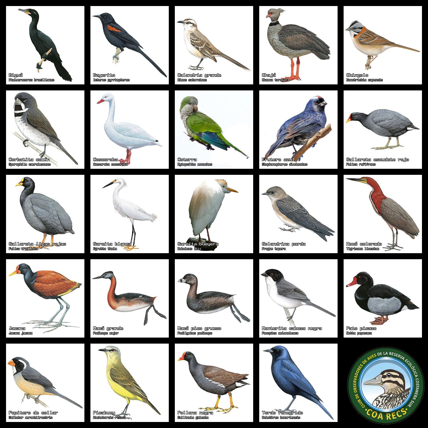 Lista de aves para usar en relevamientos y censos: