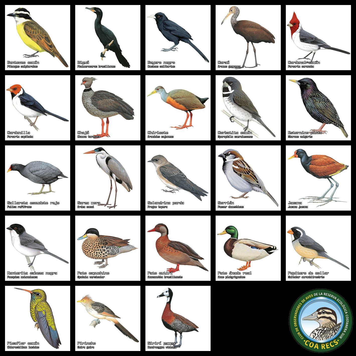 Lista de aves para usar en relevamientos y censos: